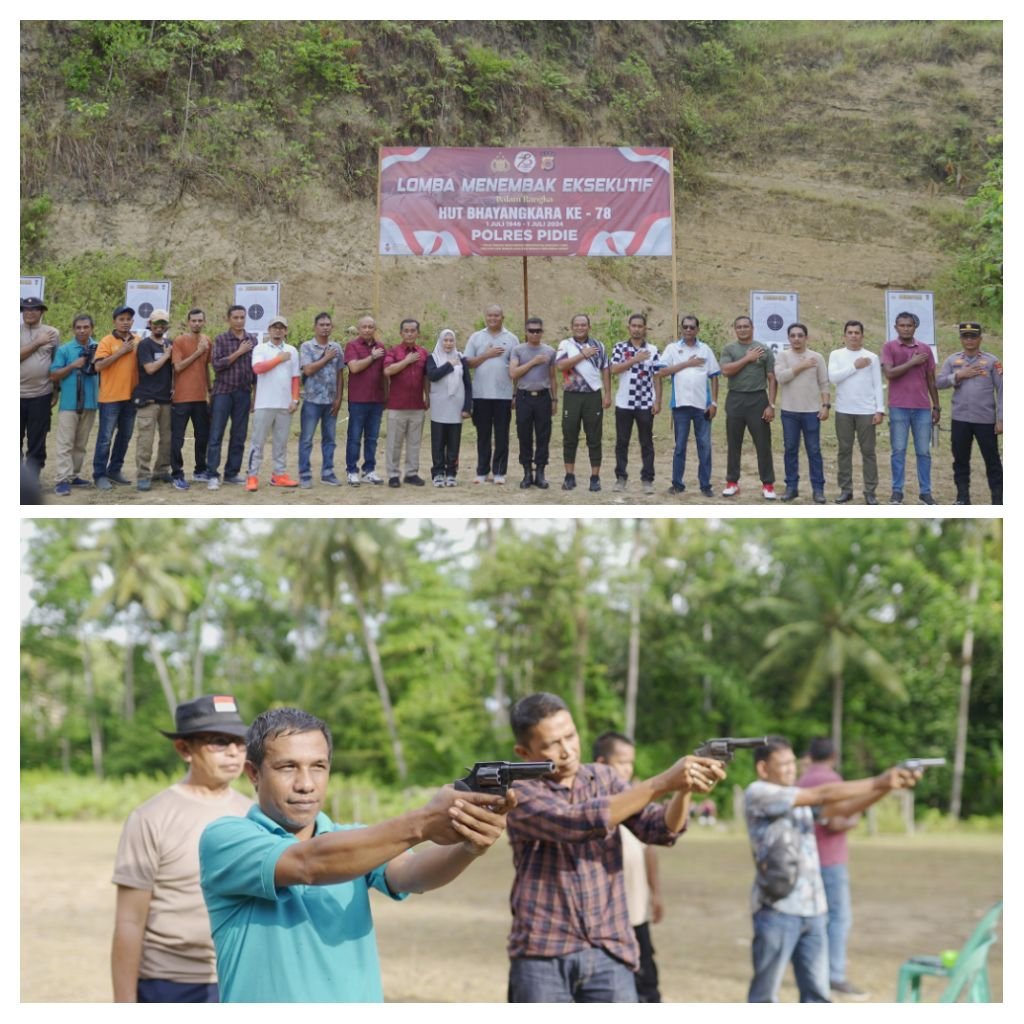 Kapolres Pidie AKBP Imam Asfali, SIK, MH, mengatakan kegiatan tersebut merupakan rangkaian memperingati hari Bhayangkara ke-78 tahun. Bukan hanya dari Forkopimda Pidie, rekan-rekan awak media juga ikut kita ajak dalam kegiatan lomba menembak.