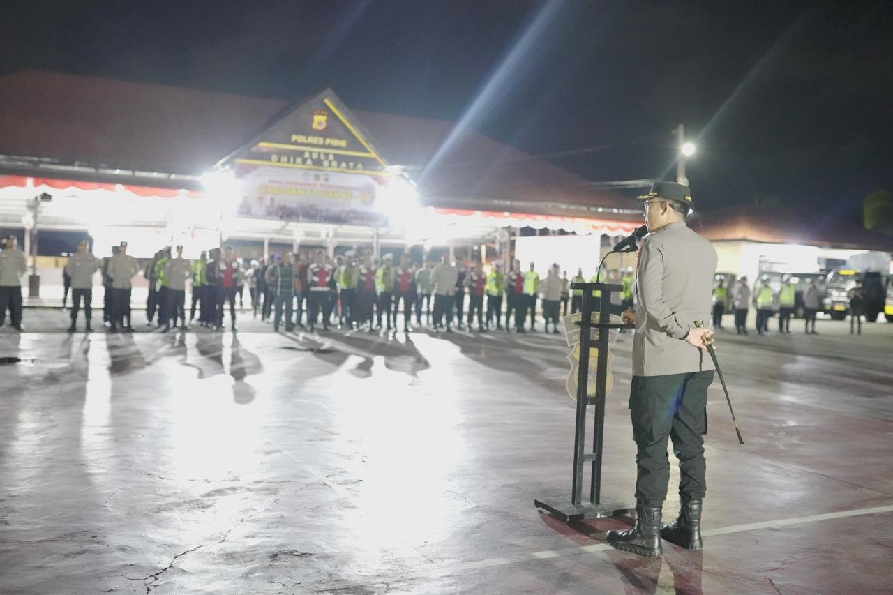 Sigli – Polres Pidie bersama Kodim 0102 / Pidie melaksanakan gelar apel cipta kondisi dan patroli gabungan TNI-POLRI dalam rangka antisipasi guantibmas menjelang Peringatan Hari Damai Aceh MOU Helsinki yang ke-19 bertempat di lapangan apel Polres Pidie. Rabu malam, (14/08/2024)