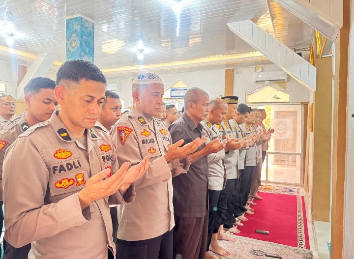 Sigli – Sebagai bentuk penghormatan kepada 3 personel Polres Way Kanan Polda Lampung yang gugur dalam melaksanakan tugas, puluhan personel Polres Pidie menggelar Shalat Ghaib di Mushalla Ar Rahim Polres Pidie, Selasa (18/3/2025).
