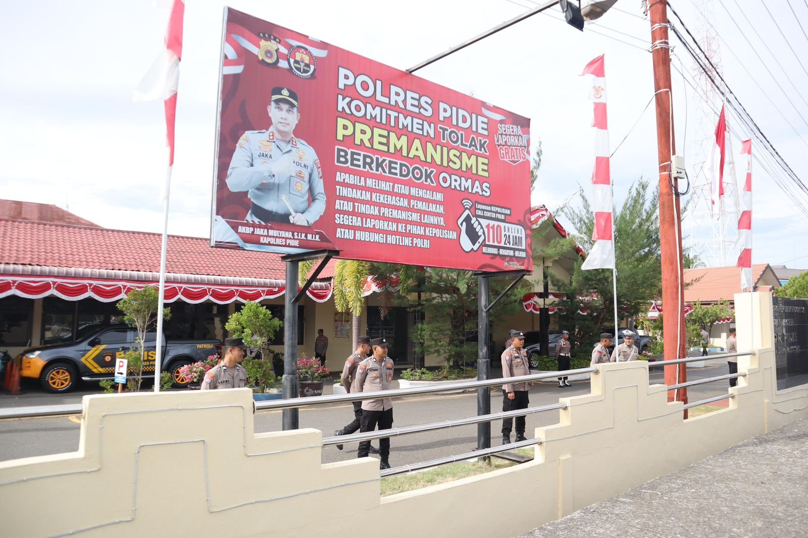 Kegiatan ini turut dihadiri oleh Kapolres Pidie AKBP Jaka Mulyana, SIK, MIK, Wakapolres Pidie, Kompol Dwi Arys Purwoko, S.IP., SIK., MH., para Kabag, Kasat, Kasi, perwira serta seluruh personel Polres Pidie.
