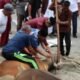 Setelah Shalat Idul Adha, kegiatan dilanjutkan dengan penyerahan hewan qurban oleh Kapolres kepada Ketua Panitia Pemotongan Hewan Qurban yang dipimpin oleh Kabag SDM Polres Pidie Jaya, AKP Mahyuddin. Sebanyak lima ekor sapi dan dua ekor kambing diserahkan secara simbolis untuk disembelih sebagai wujud syukur dan ibadah kepada Allah SWT.