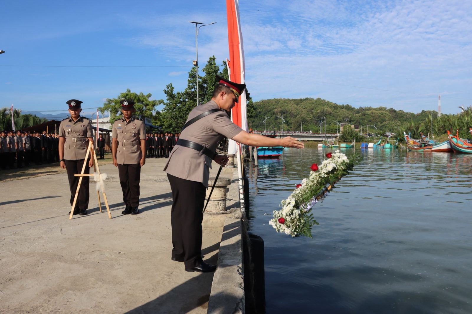 Pidie Jaya – Dalam rangka memperingati Hari Bhayangkara ke-79, Polres Pidie Jaya menggelar upacara tabur bunga di kawasan Tempat Pelelangan Ikan (TPI) Kecamatan Pante Raja. Selasa, 23 Juni 2025.