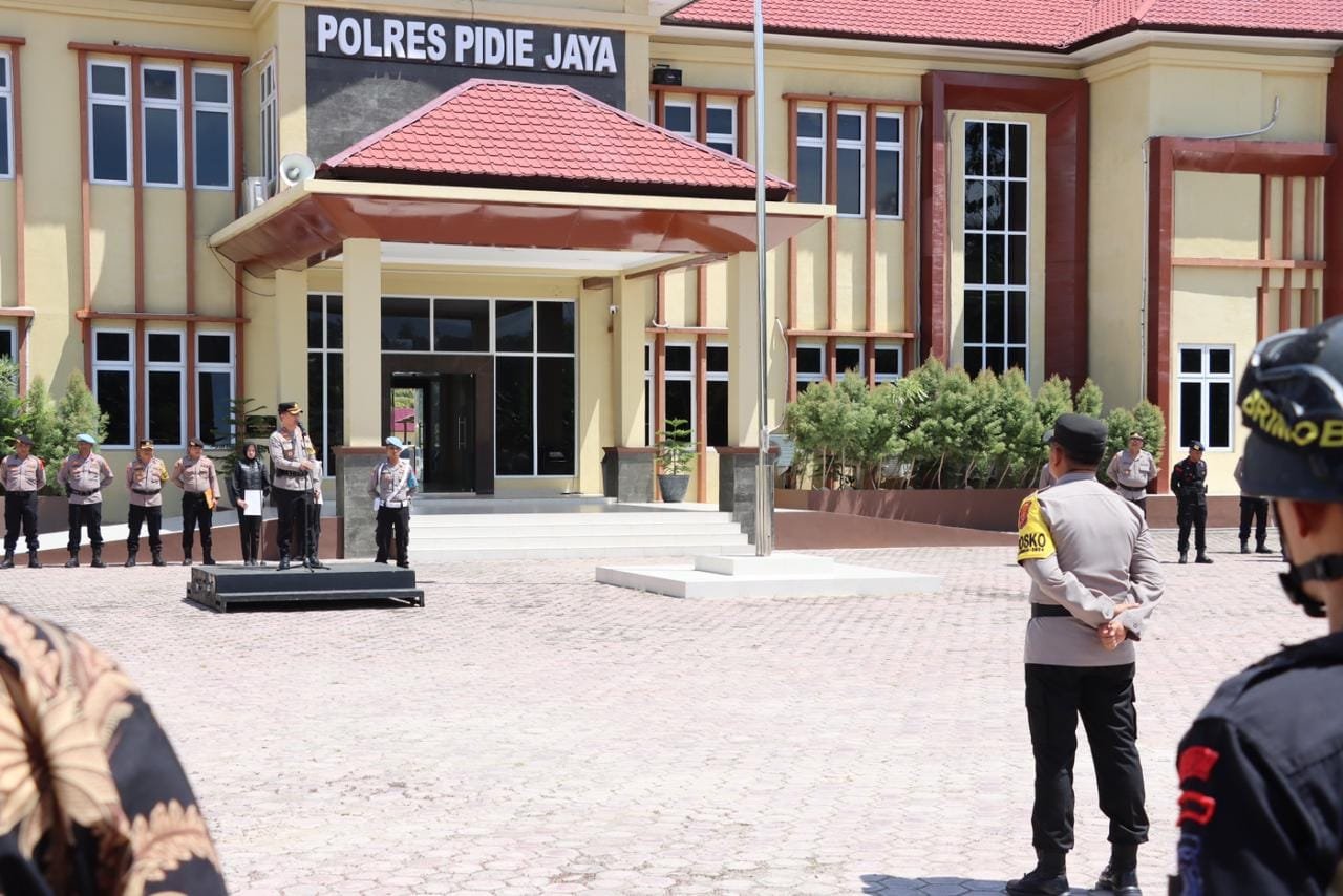 Apel ini dipimpin langsung oleh Kapolres Pidie Jaya, AKBP Ahmad Faisal Pasaribu, S.H., S.I.K., M.H., serta diikuti Wakapolres Kompol Muara Uli Saud Hamonangan, S.E., M.M., pejabat utama, dan seluruh personel Polres Pidie Jaya.