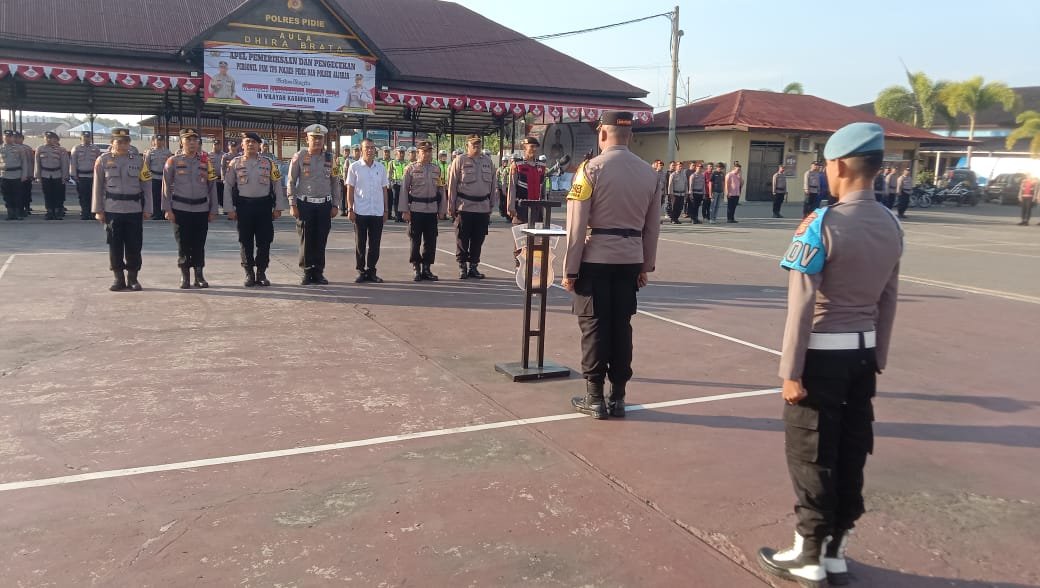 Seperti yang terlihat di Lapangan Apel Mapolres Pidie, Kamis (8/2/2024) pagi, sejumlah kurang lebih 200 personel Polres melaksanakan apel.