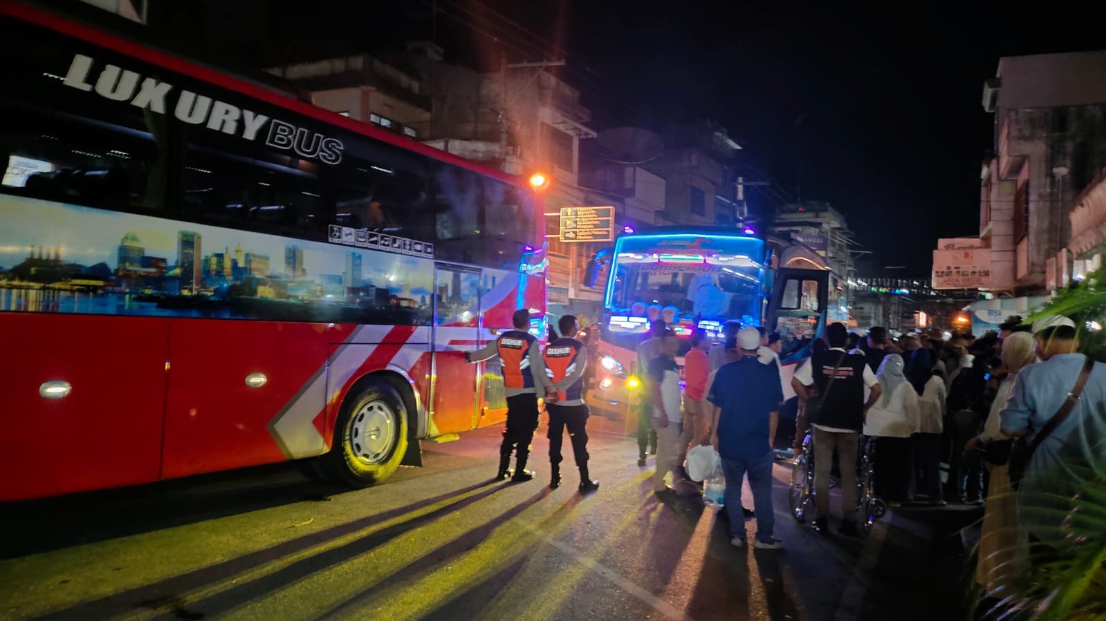 Polres Tebing Tinggi memberikan pengamanan pada kegiatan kepulangan dan penyambutan rombongan jamaah Haji Kloter 005 asal Kota Tebing Tinggi, di Mesjid Raya Nur Addin Jalan Suprapto Kota Tebing Tinggi, Sabtu (29/06/24) sekitar pukul 01.30 Wib.
