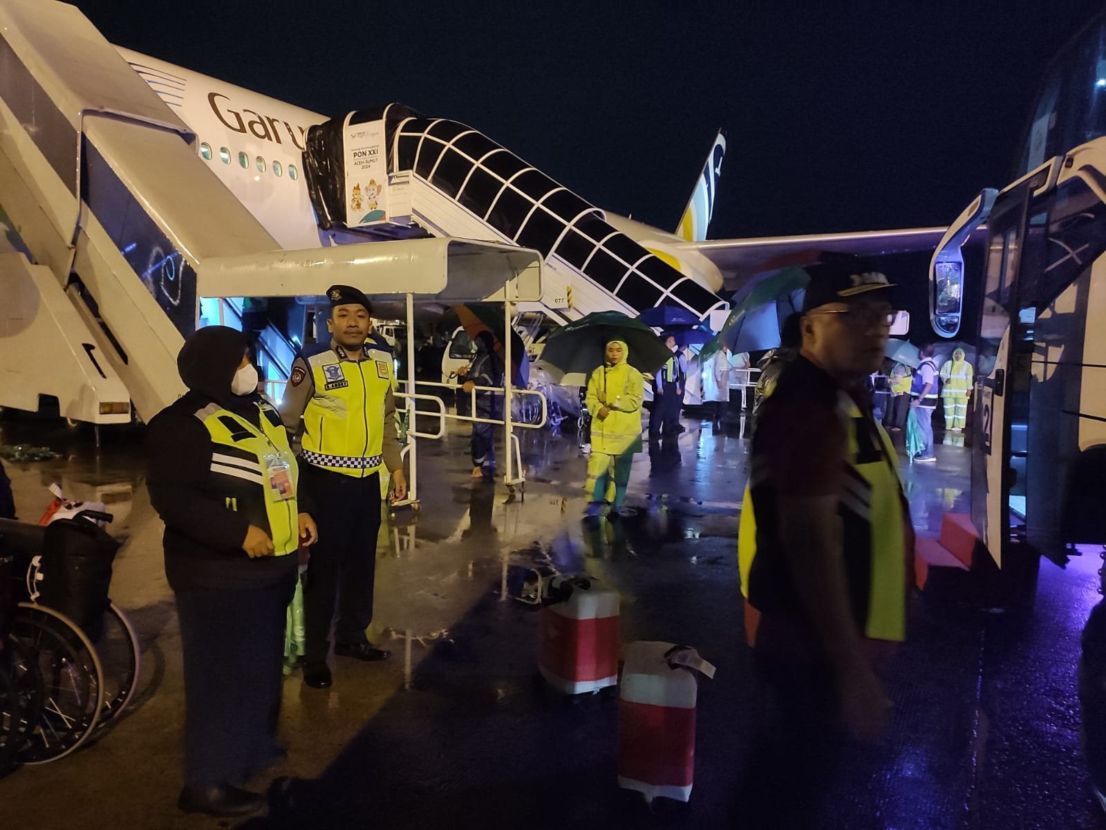 Adapun pelaksanaan pengamanan dilaksanakan oleh Personil Polsek Kawasan Bandara Kualanamu di Lokasi Terminal Cargo Bandara dimana Rombongan Jemaah Haji hadir sejumlah 357 orang.