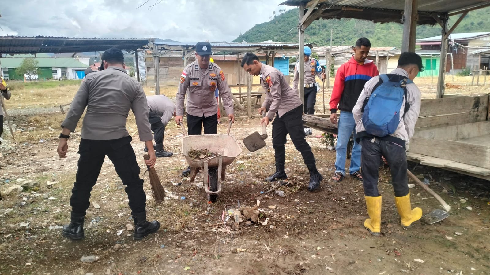 Polres Aceh Tengah bersama jajaran Polsek, personel BKO Brimob Polda Aceh, aparatur kampung, dan masyarakat melaksanakan gotong royong dan kurve kebersihan secara serentak di 13 titik fasilitas umum, Jumat (6/2/2026).