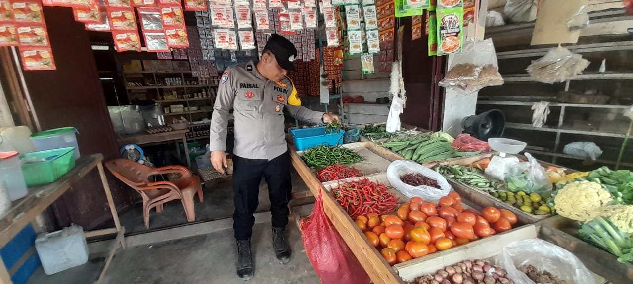 Personel Polsek Kuta Makmur sambangi toko kelontong di Keude Blang Ara, Kecamatan Kuta Makmur, Aceh Utara, wilayah hukum Polres Lhokseumawe untuk memantau stok sembako, sabtu (15/5/2024) pagi.