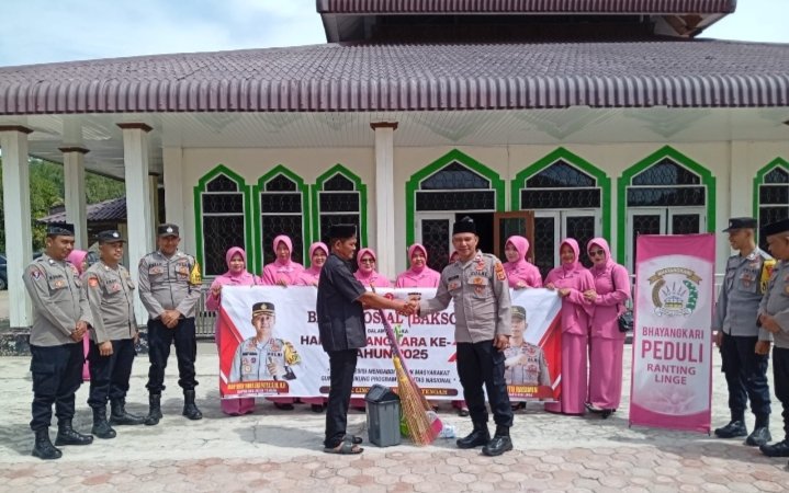 Dalam rangka memperingati Ulang tahun bhayangkara yang ke 79 tahun 2025 personel Polsek Linge beserta bhayangkari melaksanakan kegiatan Bhakti Sosial Religi,di Masjid Malik Isaq Kecamatan Linge Kabupaten Aceh Tengah.