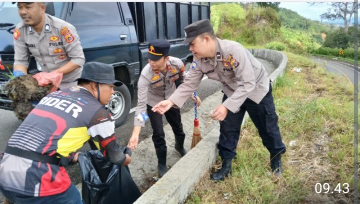 Di hari yang baik ini, bersama personil, kita bergotong royong membersihkan lingkungan baik jalan Umum Kata Kapolsek,