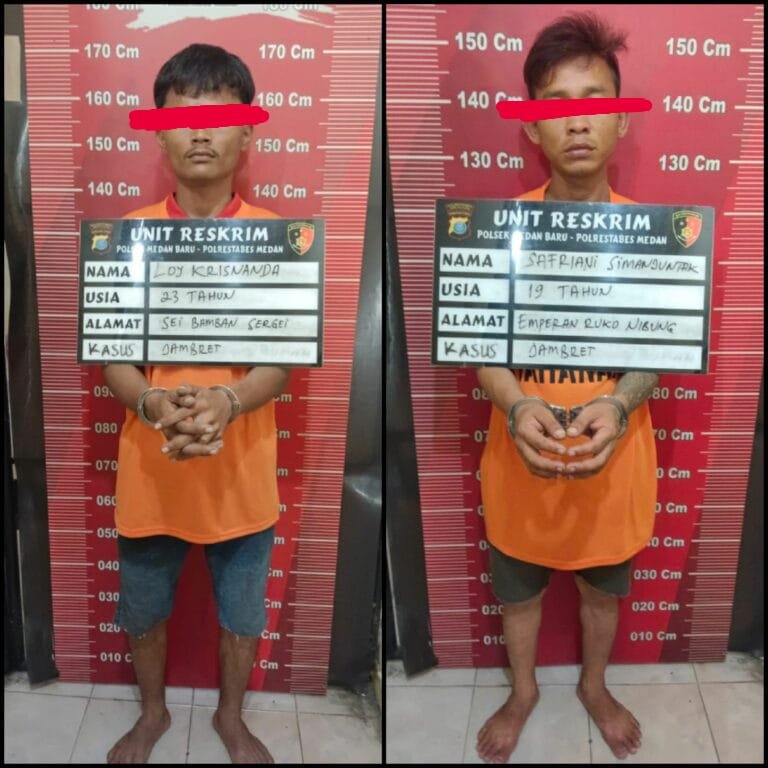 Medan- Satupena.co.id:Personel Reskrim Polsek Medan Baru mengamankan 2 pelaku pencurian Handphone Jalah Gajah Mada Medan, masing-masing berinisial SS (19 tahun) warga Jalan Nibung dan LK (22 tahun) warga Jalan Pendidikan Dusun VI, Kabupaten Serdang Bedagai.