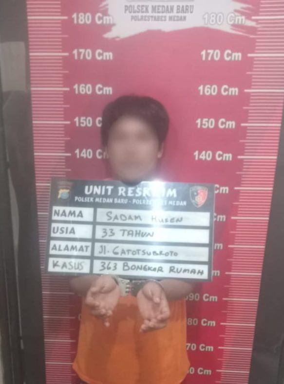 “Selasa (04/06/2024) malam Petugas kita mendapat informasi keberadaan pelaku yang sedang berada di satu rumah kos-kosan Jalan PWS, Kecamatan Medan Petisah. Petugas langsung bergerak ke lokasi dan menggerebek lokasi yang dimaksud. Pelaku kemudian diamankan. Saat diinterogasi, pelaku mengakui perbuatannya. Dari lokasi Petugas juga menyita sejumlah bersama barang diantaranya 1 Martil Besi, 1 Obeng, sepasang Baju dan Celana yang digunakan pelaku saat melakukan aksi kejahatannya,” ungkap Kapolsek Medan Baru, Kamis (06/06/2024).