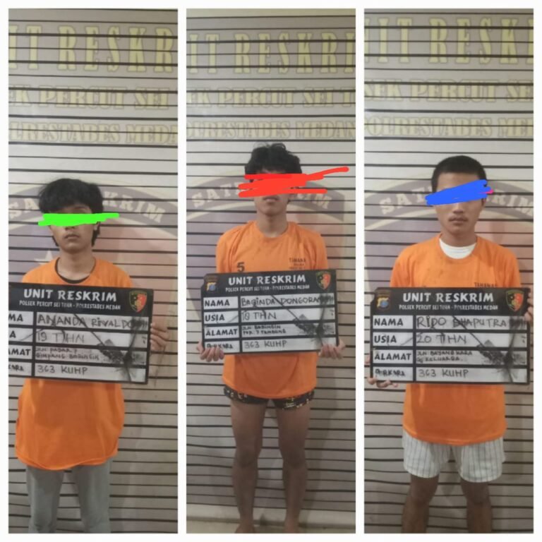 “Pada hari Minggu, tanggal 24 Maret 2024 sekitar pukul 17.00 WIB, Tim 75 Reskrim Polsek Percut Sei Tuan menerima infromasi dari warga masyarakat tentang keberadaan pelaku yang sedang berada di lokasi. Kemudian Tim mengamankan 3 orang pelaku,” ungkap Kanit Reskrim.