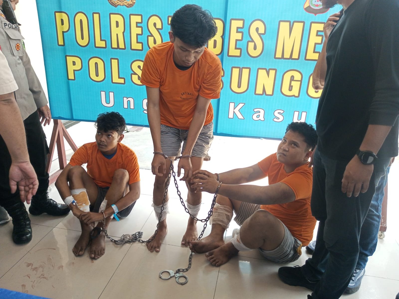 Tiga pelaku yakni M.R (21), J.K (21), dan D.H (21), seluruhnya warga Kecamatan Patumbak, Kabupaten Deli Serdang. Mereka diketahui telah melancarkan aksi kejahatan di 12 lokasi berbeda, termasuk Kota Medan, Kota Binjai, Kota Tebing Tinggi, Kabupaten Deli Serdang, dan Kabupaten Batu Bara.