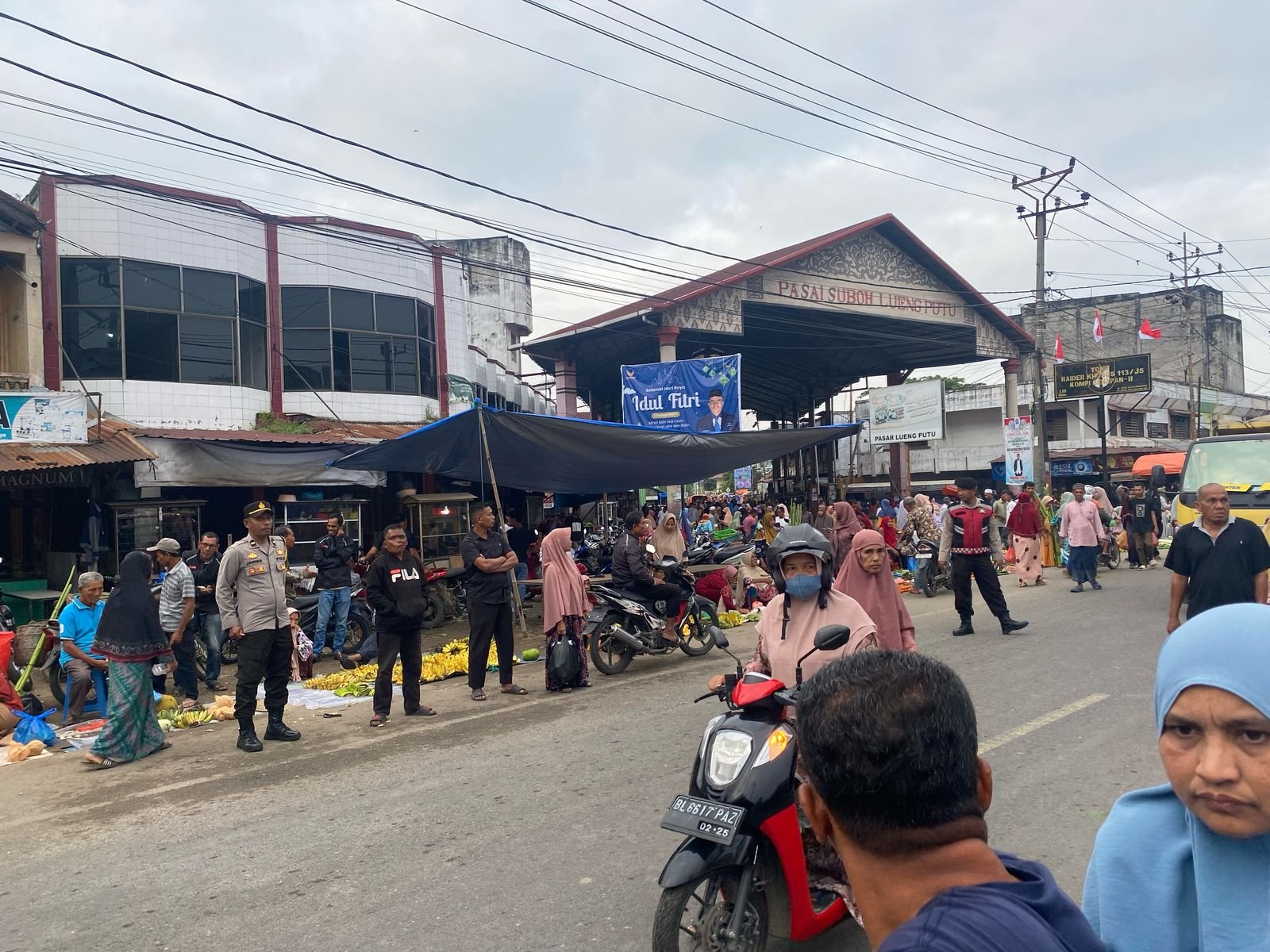 Pidie Jaya – Menjelang Hari Raya Idul Fitri 1446 H, Pos Pengamanan Ketupat Seulawah 2025 Pidie Jaya terus berupaya menjaga keamanan dan kelancaran arus lalu lintas, khususnya di Pasar Keude Lueng Putu, Kecamatan Bandar Baru, Kabupaten Pidie Jaya. Pada Minggu, 30 Maret 2025, sejak pukul 06.00 WIB, personel gabungan dari Polri, TNI, Satpol PP, dan Dinas Perhubungan Pidie Jaya turun ke lapangan untuk memastikan kondisi tetap tertib selama tradisi Meugang berlangsung.