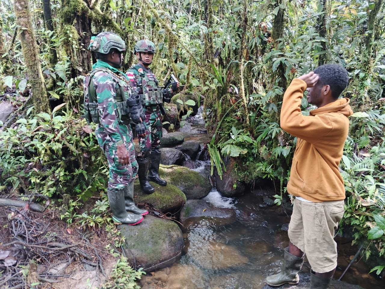 Tarup, Pegunungan Bintang, Satupena.co.id.- Dalam rangka mendukung Program TNI AD Manunggal Air yang bertujuan untuk memenuhi kebutuhan dasar masyarakat, Pos Tarup Satgas Pamtas RI–PNG Yonif 751/Vira Jaya Sakti (VJS) melaksanakan peninjauan lokasi yang berpotensi menjadi sumber air bersih di wilayah Distrik Tarup, Kabupaten Pegunungan Bintang, Papua Pegunungan.