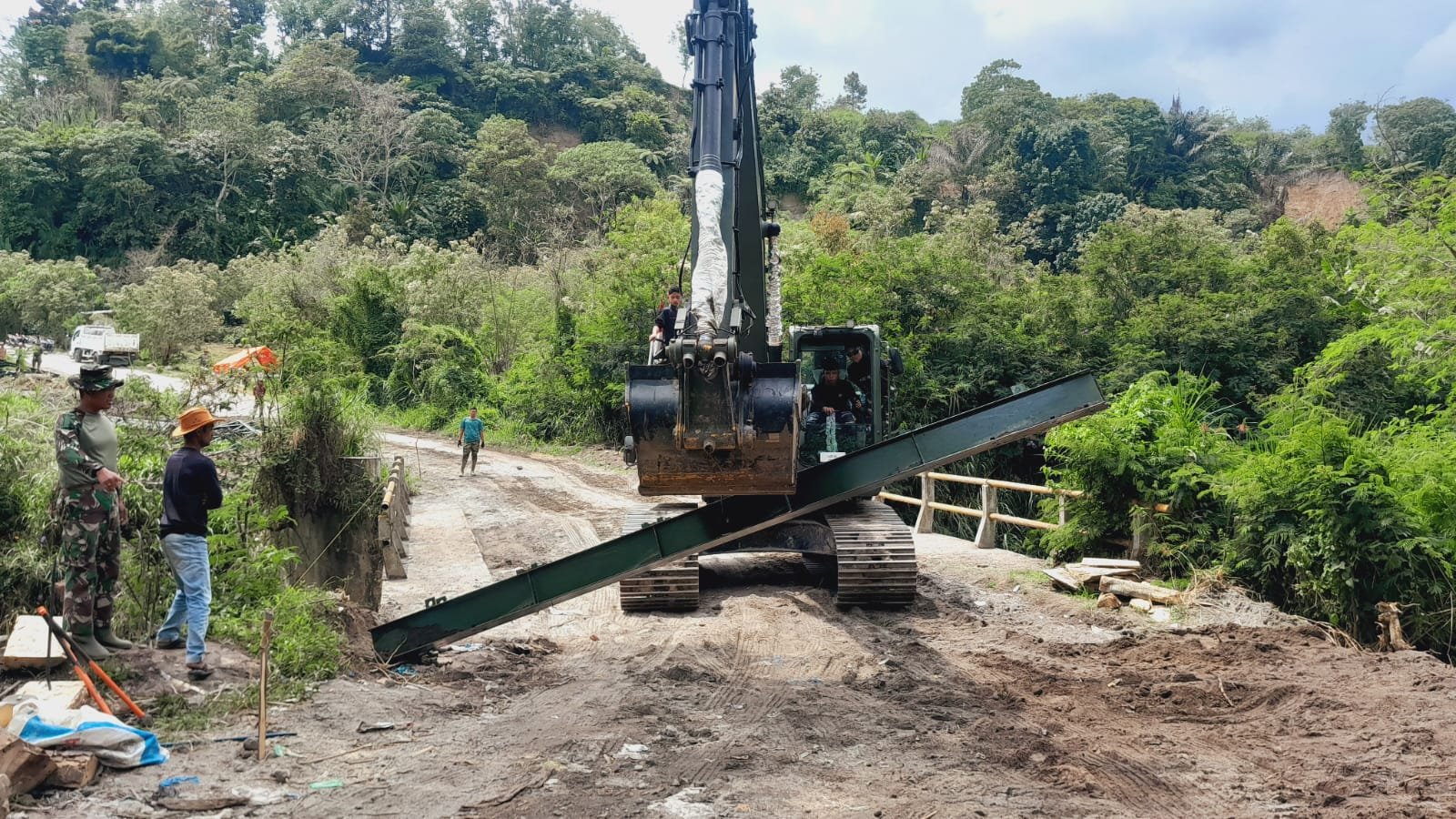 Satu unit jembatan Bailey telah tersedia di lokasi sebagai material utama pembangunan. Rencana kegiatan pada hari berikutnya adalah melanjutkan pemindahan material serta memulai proses perakitan rangka jembatan.