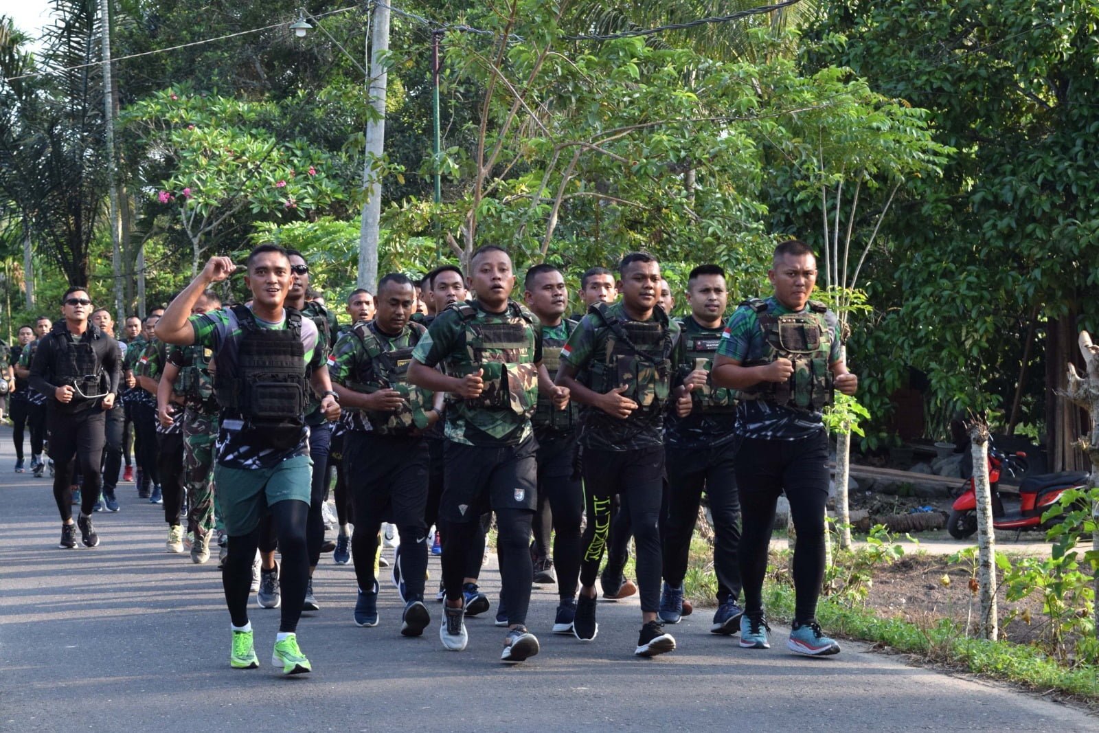 Sebelum melaksanakan Lari Sore, Terlebih dahulu Prajurit Badak Hitam melaksanakan senam pemanasan yang dipimpin oleh Bintara Jasmani (Bajas) di lapangan Hijau Mako Yonif 113/JS dan dilanjutkan lari dengan menggunakan beban Rompi dengan jarak tempuh 3 Km yang bertempat di sekitaran Desa Blang Keutumba komplek, Kab. Bireuen.