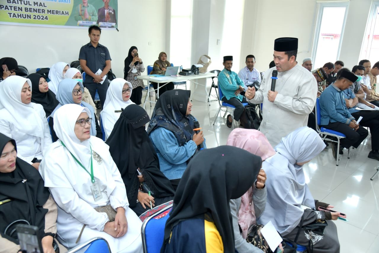 Pagi itu tampak hadir, Kadis Syariat Islam Taslim, S.Ag.,M.Sos, Ketua Baitul Mal Bener Meriah Tgk. Nawawi dan Anggota Baitul Mal, Direktur RSUD Muyang Kute dr. Sri Tabahati, SP.AN para peserta pelatihan (Pegawai RSUD Muyang Kute dan Puskesmas dalam wilayah Kabupaten itu.