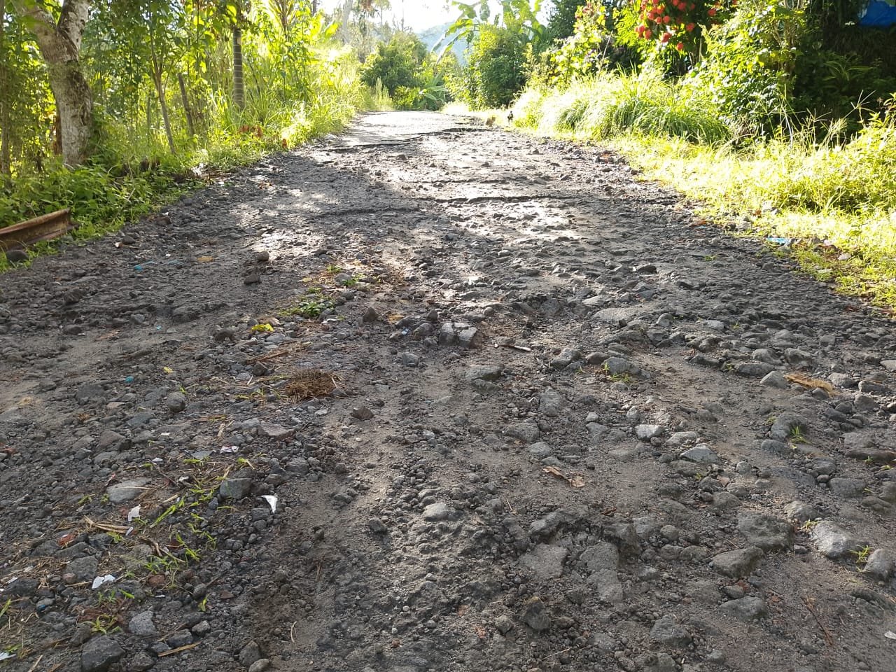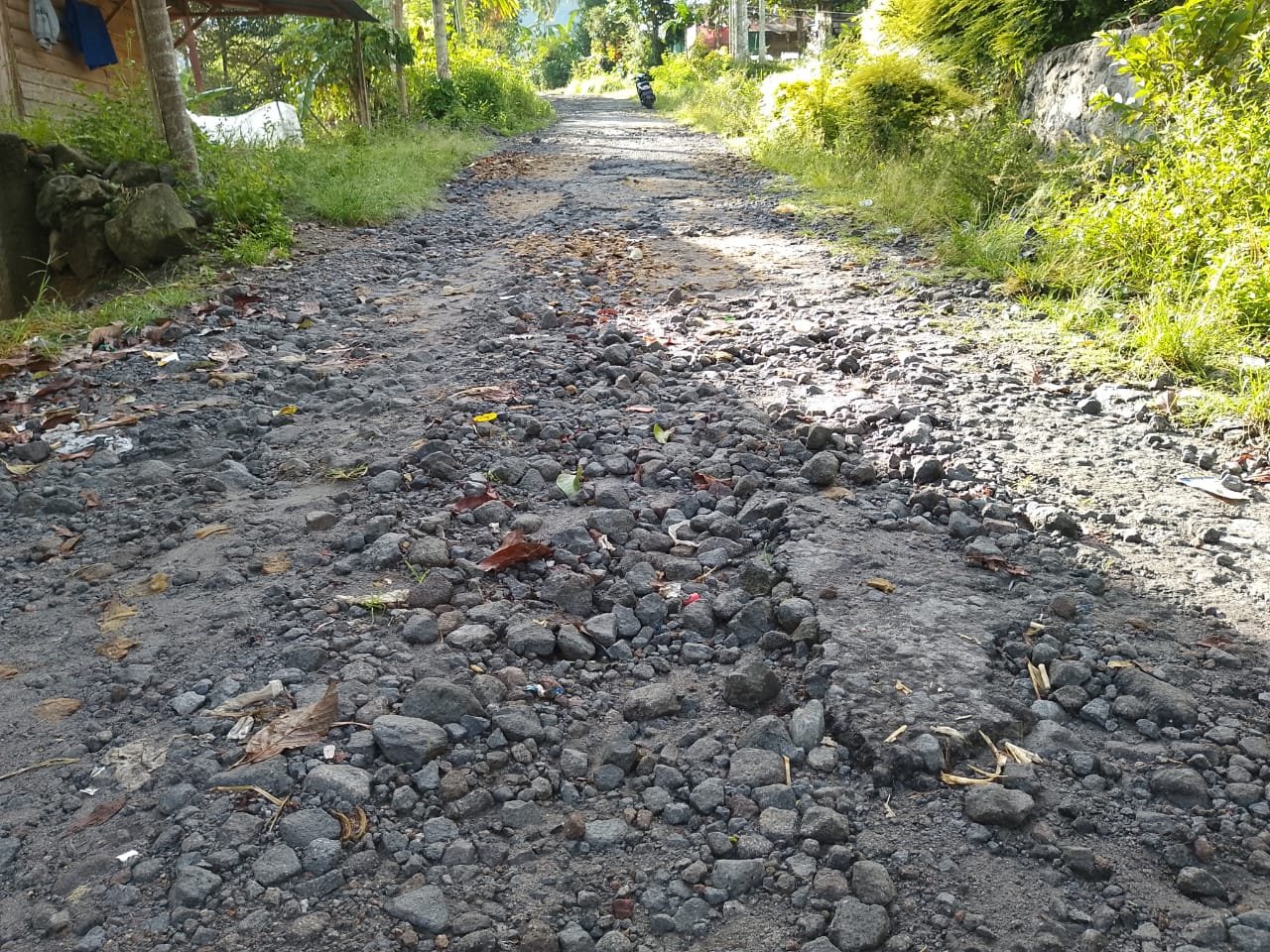 Sudah puluhan tahun kondisi jalan Kampung Setie rusak parah, dan banyak berlobang serta bebatuan yang berserakan, sehingga sering kali warga terjatuh saat melintas di jalan ini, kata Anto.