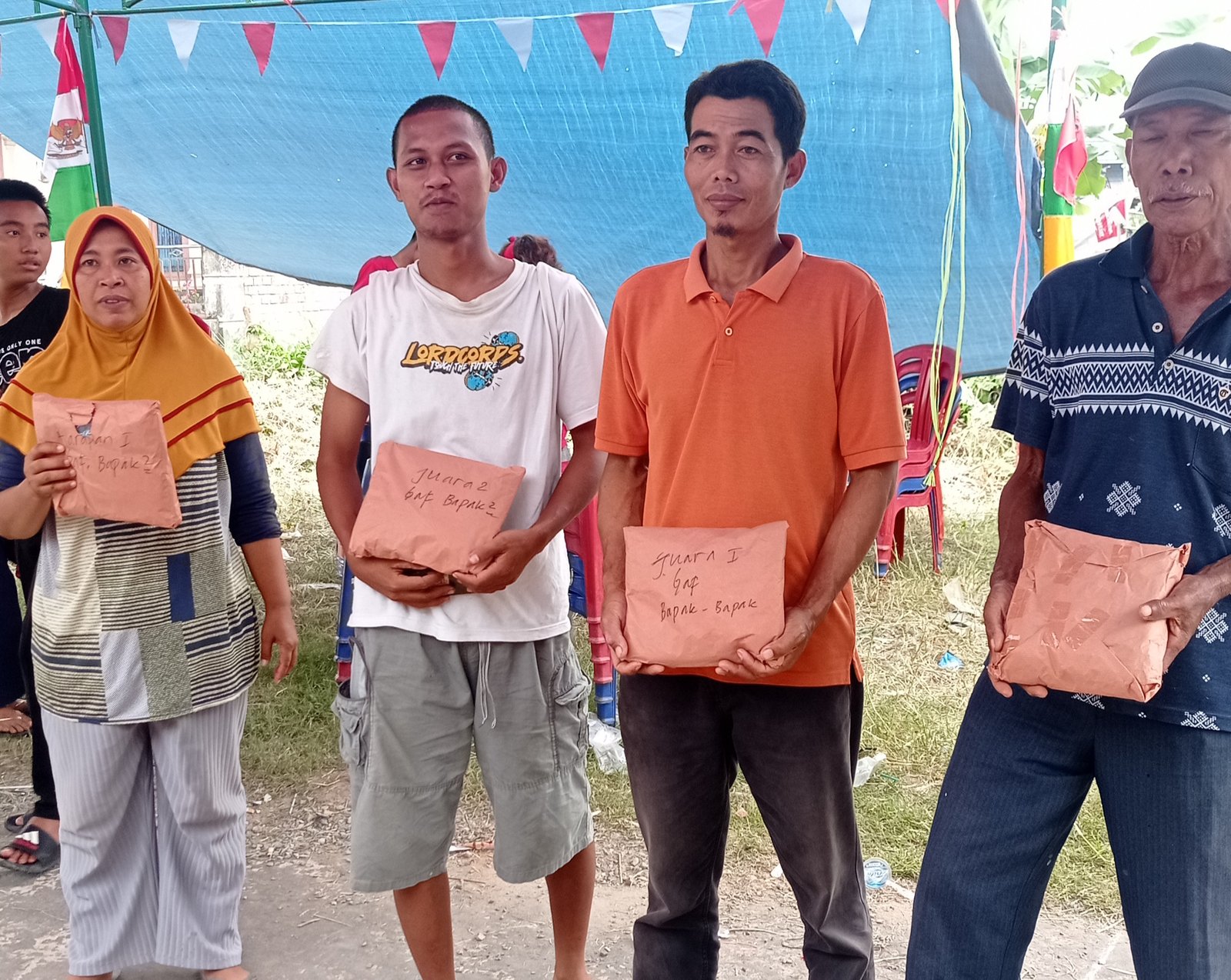 “Perlombaan yang dilombakan diantaranya lomba cerdas cermat, mewarnai, tarik tambang putra, estafet sarung putri, tebak dar der dor, lomba kelereng sendok, balak jongkok helm cowok, rebut kursi ratu, lomba gaple, pecakan balon kaki, dan koin pepaya coklat. Jadi ada katagorinya masing-masing sesuai yang di perlombakan, seperti lomba galple untuk Bapak-bapak yang suda di mulai semalam”. Jelasnya.