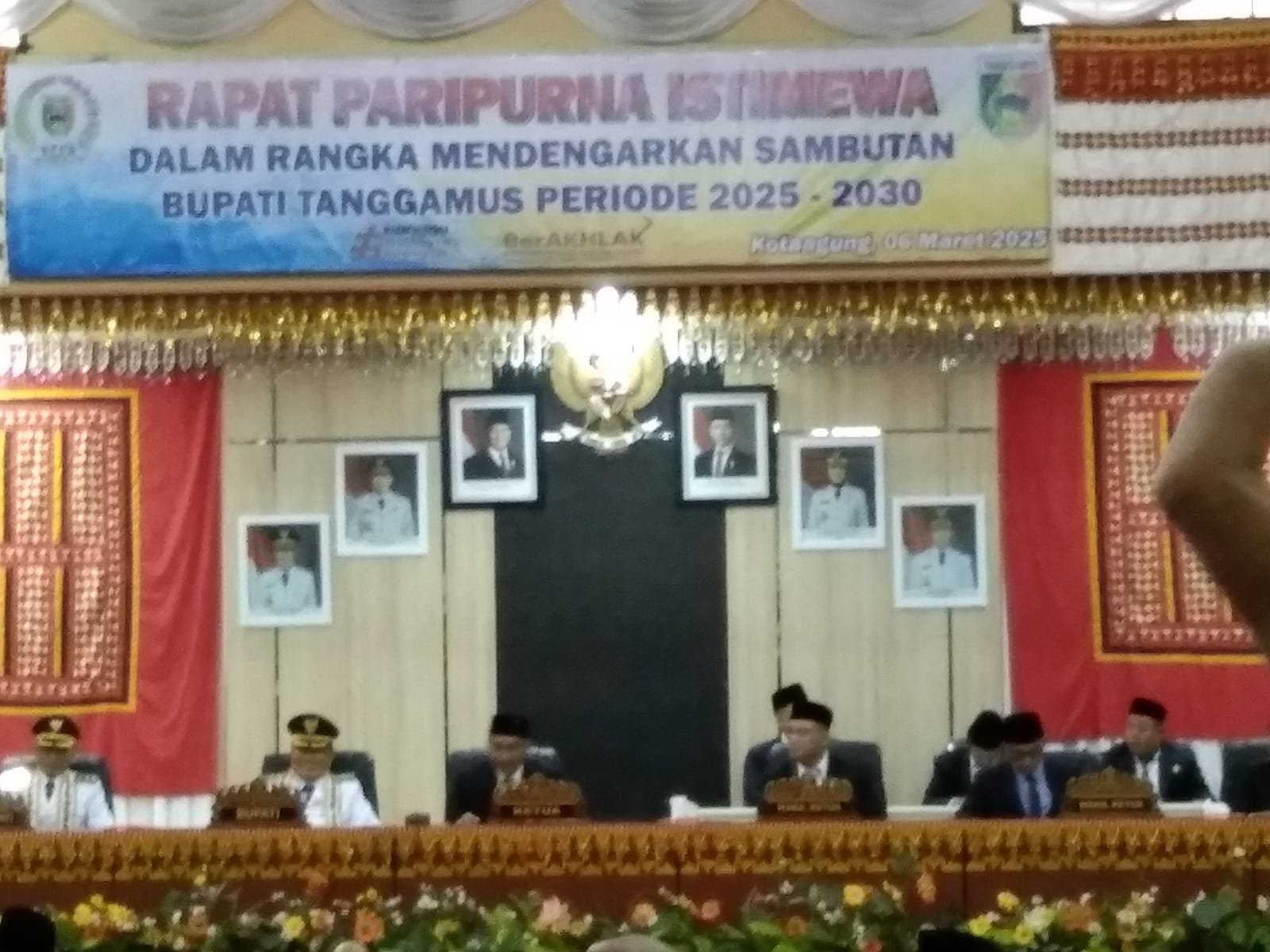 Dalam sambutannya, Ketua DPRD Kabupaten Tanggamus menyampaikan rasa syukur atas terselenggaranya pemilihan kepala daerah yang berjalan tertib, aman, dan lancar. Ia juga mengucapkan selamat kepada Bupati dan Wakil Bupati terpilih, Moh. Saleh Asnawi dan Agus Suranto, yang telah dilantik oleh Presiden Prabowo di Istana Merdeka pada 20 Februari 2025.