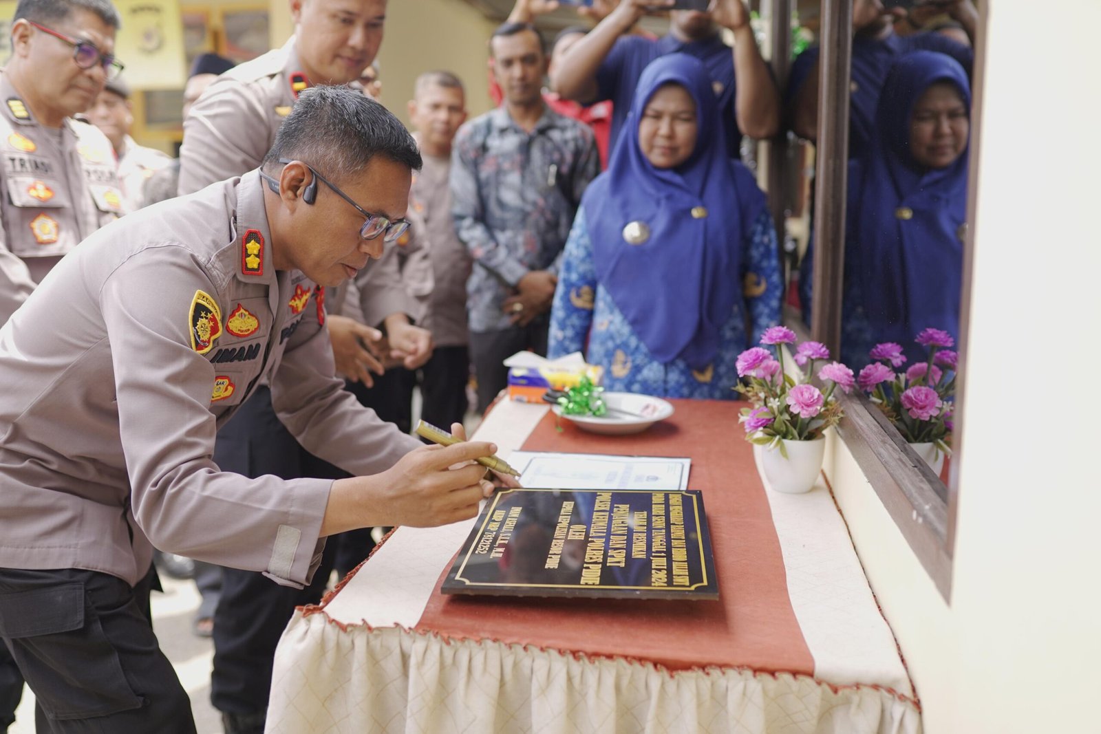 Peresmian ruang SPKT baru di Polsek Keumala Polres Pidie ini ditandai dengan menandatangani batu prasasti dan pengguntingan pita yang dilakukan oleh Kapolres Pidie.