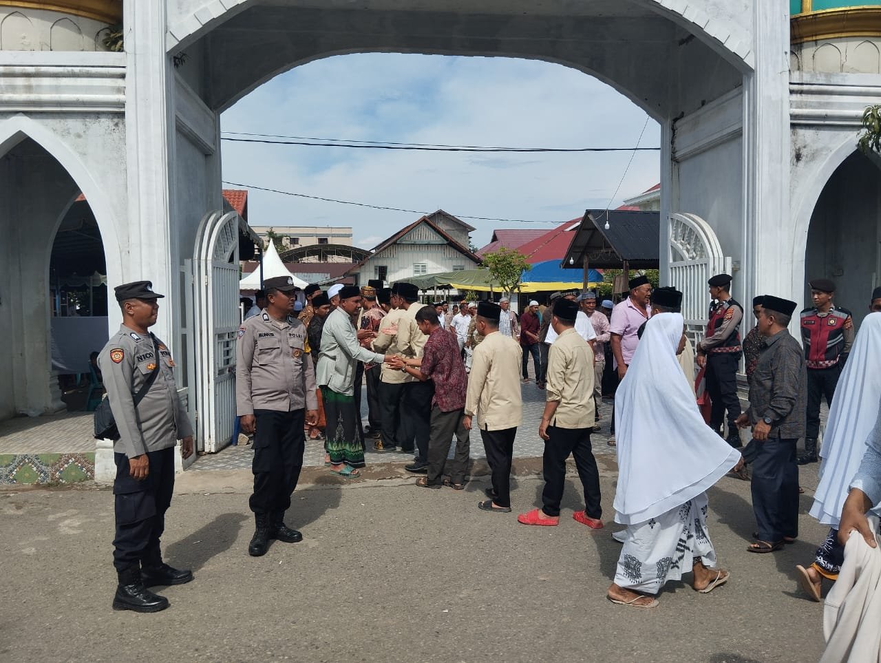 Demi memastikan kelancaran dan ketertiban, Polres Pidie Jaya turun langsung ke lapangan, mengatur keamanan serta arus lalu lintas agar prosesi berjalan khidmat dan tertib.