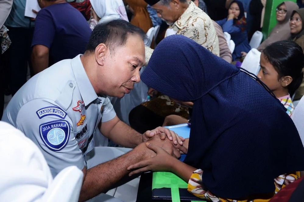 Santunan diserahkan secara simbolis oleh Direktur Utama Jasa Raharja, Rivan A. Purwantono, di Gedung SMK Lingga Kencana, Depok, Jawa Barat, pada Senin (13/05/2024).