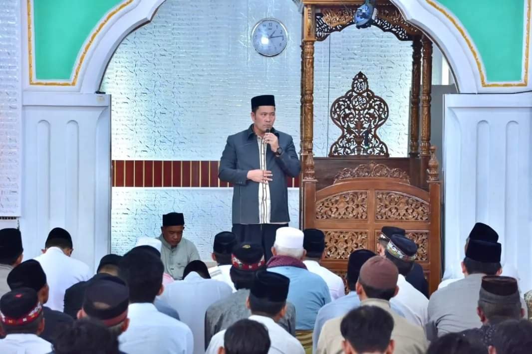 Usai pelaksanaan sholat Jum’at, Pj. Bupati Drs. Haili Yoga, M.Si menyampaikan beberapa hal terkait program pemerintah daerah melalu Baitul Mal, diantaranya terkait Zakat. Dia menyampaikan, bahwa pemerintah daerah akan menertibkan terkait zakat. ” Pemerintah daerah akan mengeluarkan instruksi Bupati terkait wajib zakat. Kita ingin lihat apakah dengan hal tersebut zakat kita akan terkelola dengan baik,” ucapnya.