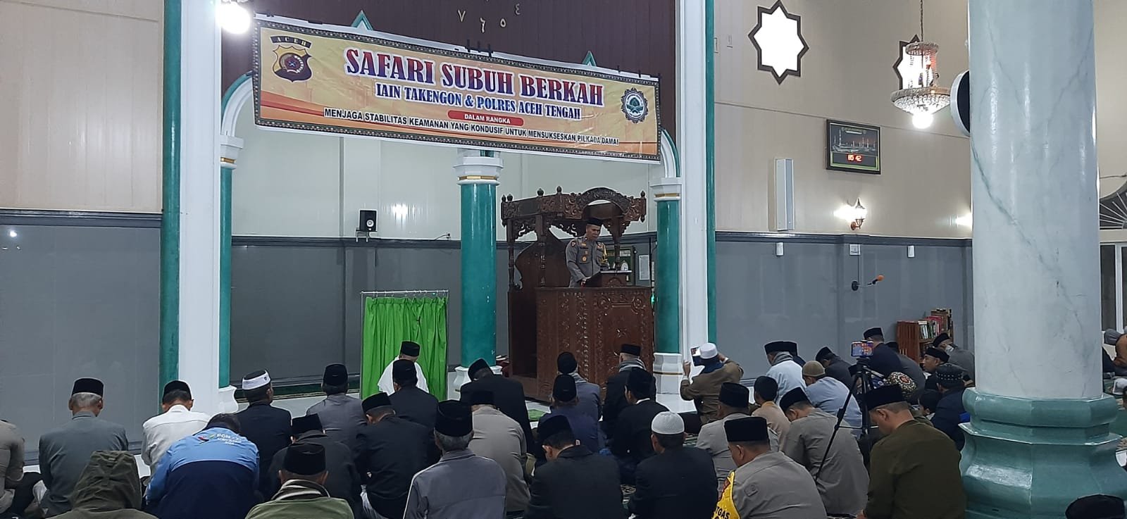 Lagi Institut Agama Islam Negeri (IAIN) Takengon berkolaborasi dengan Polres Aceh Tengah menggelar safari subuh berkah di Masjid Al Abrar Kecamatan Kebayakan Kabupaten Aceh, Rabu 11 September 2024 pagi.