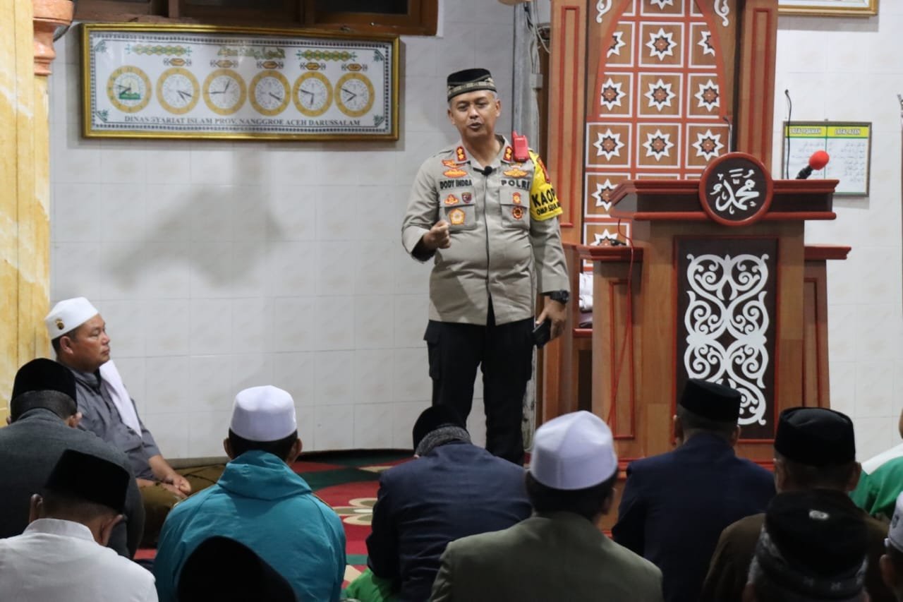 Kapolres Aceh Tengah Akbp Dody Indra Eka Putra,S.I.K,M.H, bersama Rektor IAIN Takengon Prof. Dr. Ridwan Nurdin, MCL, Wakapolres Kompol Samsir,S.H. dan Pju, melaksanakan Safari subuh shalat berjamaah di Masjid Jami’ Baburrayan, Takengon Timur Kecamatan Lut Tawar, dilanjutkan dengan penyampaian pesan kamtibmas, Rabu 16 Oktober 2024 pagi.