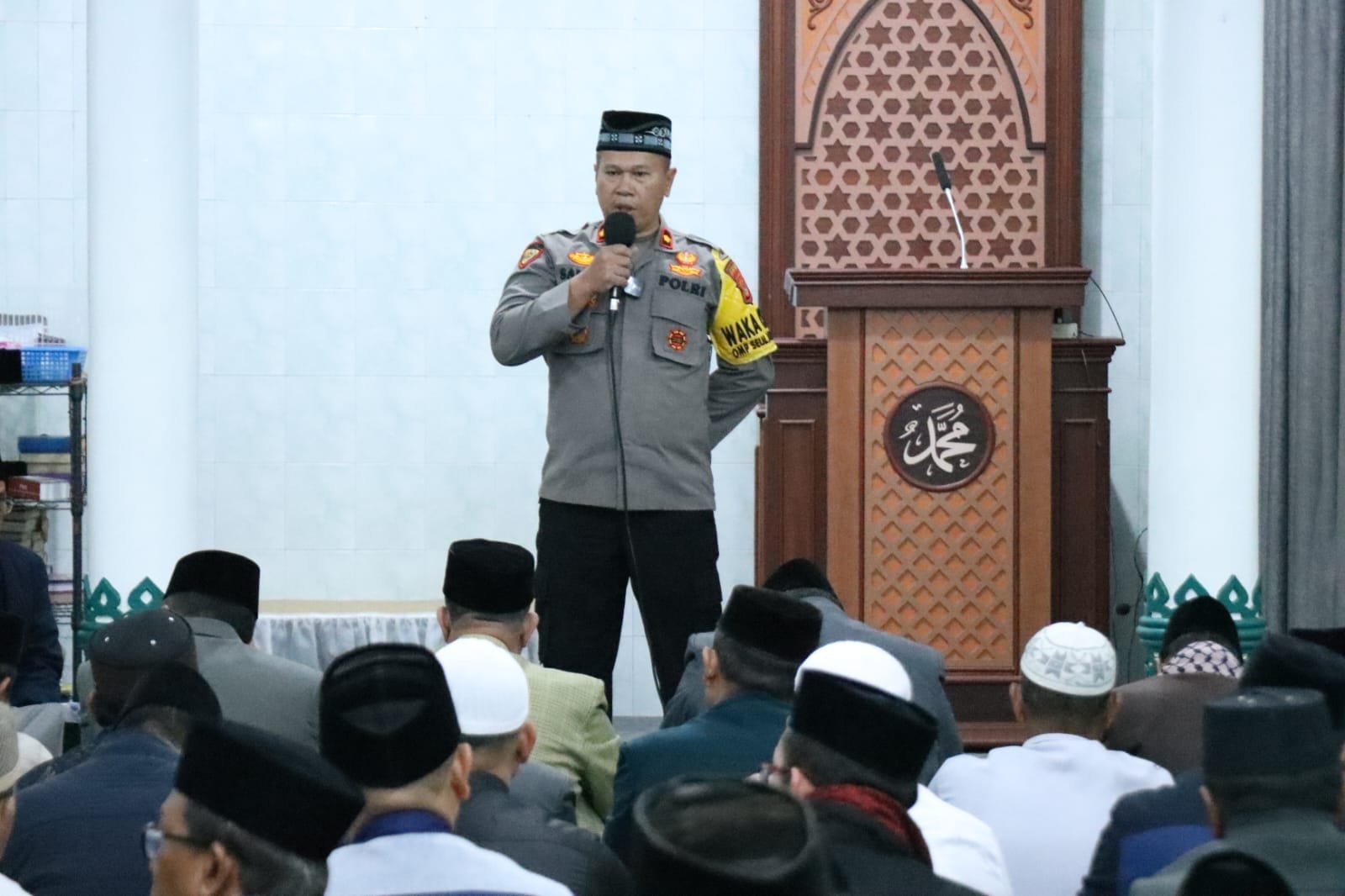 Dalam tausyiah dan pesan kamtibmasnya, Wakapolres Kompol Samsir mengajak utk senantiasa menggalakkan shalat lima waktu seperti shalat subuh berjamaah yg dilaksanakan pagi ini.
