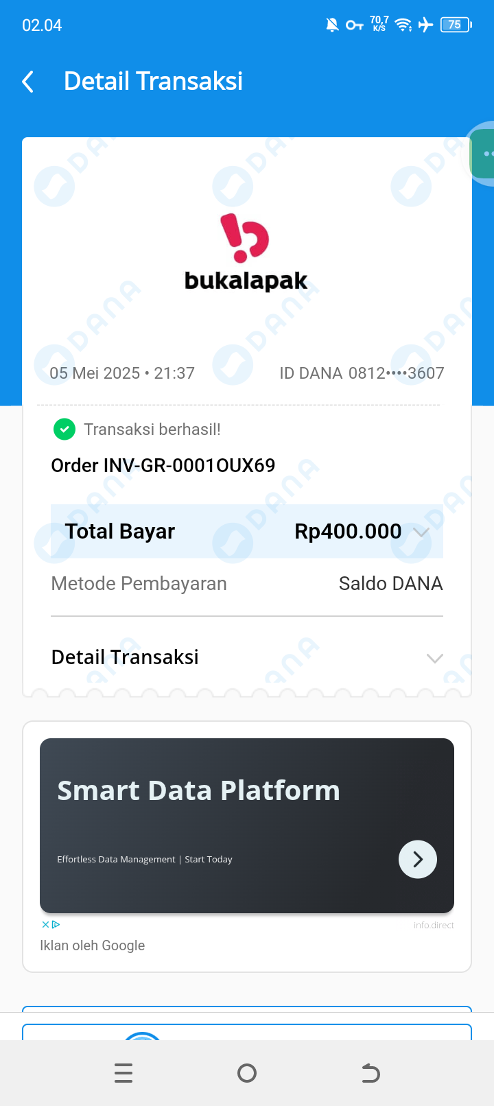 “Setelah saya mengisi data dan menghubungkan akun DANA, tiba-tiba saldo saya sebesar Rp400 ribu terpotong melalui transaksi di Bukalapak. Padahal saya sama sekali tidak melakukan pembelian apa pun,” ujar korban kepada redaksi.