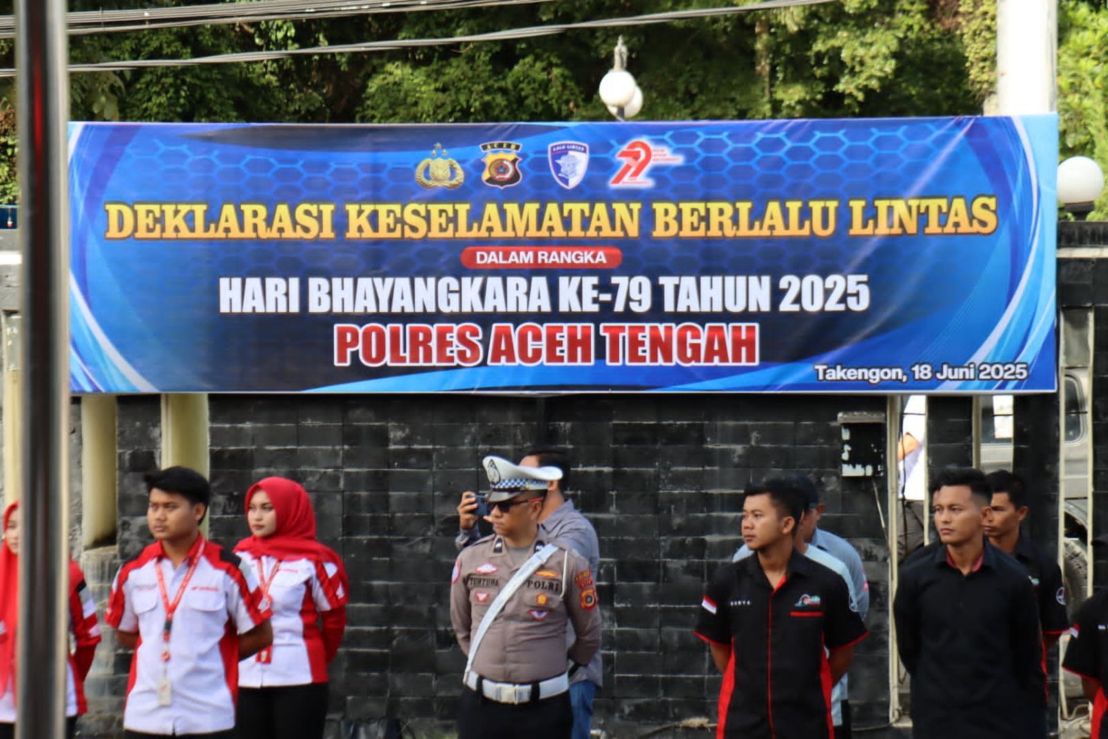 Dalam rangka memperingati Hari Bhayangkara ke-79 tahun 2025, Polres Aceh Tengah menggelar Deklarasi Keselamatan Berlalu Lintas bersama berbagai komunitas kendaraan bermotor di Kabupaten Aceh Tengah. Kegiatan ini berlangsung di halaman Mapolres Aceh Tengah, Rabu pagi (18/6/2025), dipimpin langsung oleh Kapolres Aceh Tengah, AKBP Dody Indra Eka Putra.