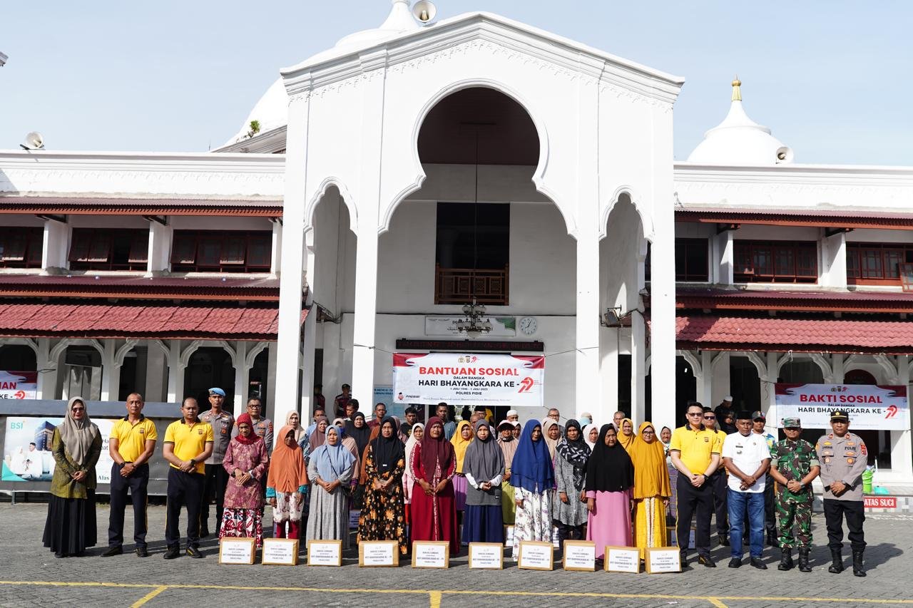 Penyaluran sembako ini berlangsung usai kegiatan bakti religi di Masjid Al-Falah Kota Sigli, yang menjadi bagian dari rangkaian kegiatan sosial Polres Pidie menjelang peringatan hari jadi Kepolisian Negara Republik Indonesia.