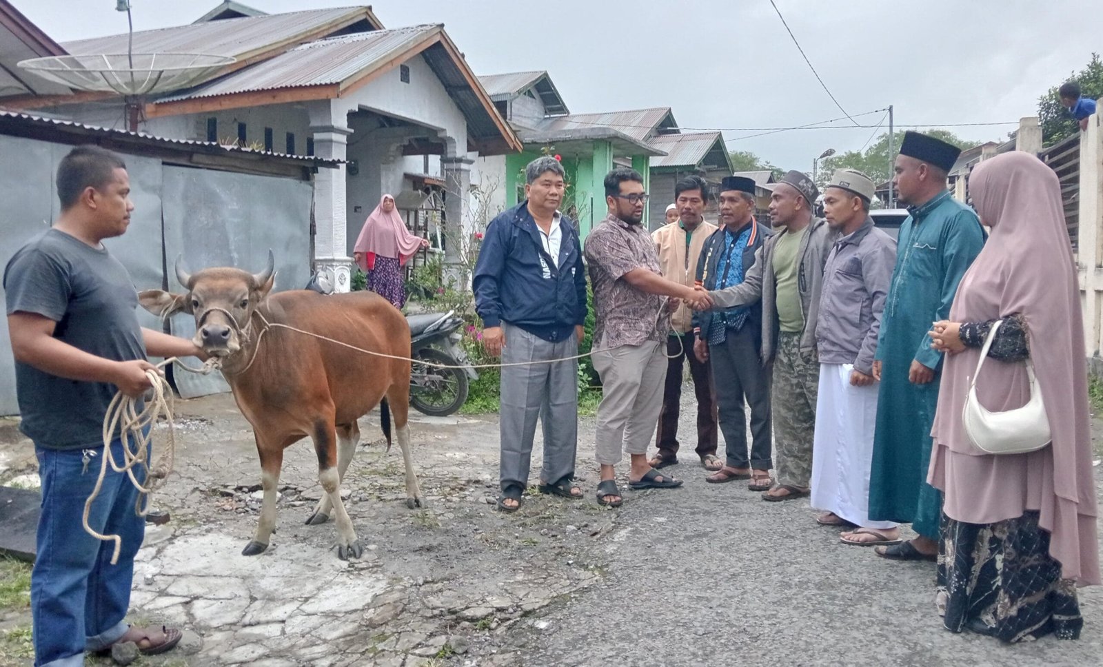 Bener Meriah-satupena.co.id: Sarhamija SE. Ketua DPD Partai NasDem Kabupaten Bener Meriah yang juga Ketua Tim Pemenangan calon Bupati dan Wakil Bupati nomor urut 1 Edi Sariman Usman-Rais Abidin atau lebih dikenal dengan sebutan ERA, bersama Sutarmi Anggota DPR-A Provinsi Aceh dapil 4 Bener Meriah dan Aceh Tengah serta Dr.Win Kusumandana Mimija Wakil Ketua 1 DPRK Bener Meriah fraksi NasDem menyerahka satu ekor sapi ( Lembu ) kepada warga masyarakat Kampung Jungke Kecamatan Permata Kabupaten Bener Meriah. Jum’at 18 Oktober 2024.