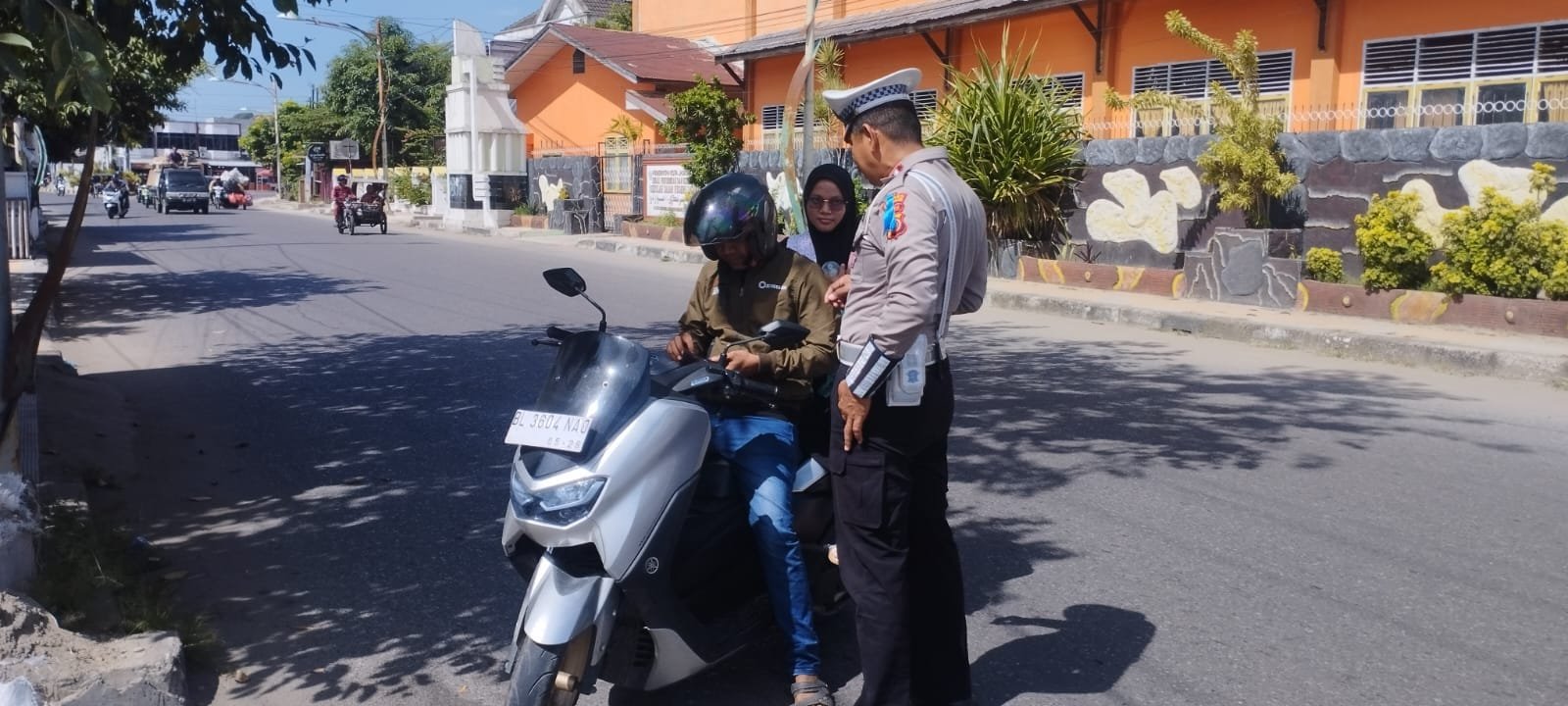 Patroli di kawasan tertin lalu lintas tersebut terdapat pengendara yang melanggar aturan lalu lintas pada pagi ini dan di berikan penindakan hukum, dan kami menghimbau kepada masyarakat untuk mentaati aturan demi keamanan bersama di jalan raya.(**)