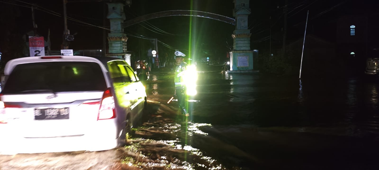 “Kami hadir di sini untuk memastikan bahwa arus lalu lintas tetap terkendali meskipun situasi banjir melanda.