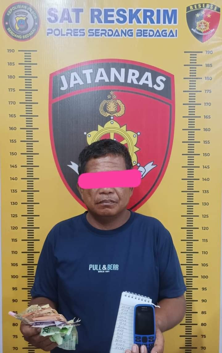 Serdang Bedagai-Satupena.co.id:Tim Operasional Satuan Reserse Kiriminal (Sat Reskrim) Polres Serdang Bedagai berhasil mengamankan seorang pria berinisial EES (50 tahun), terduga pelaku perjudian tebak angka jenis Sidney, Kamis (27/06/2024).