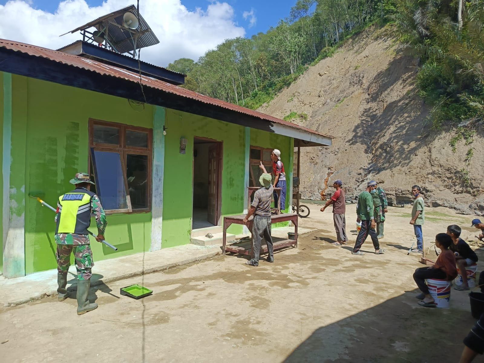 Satgas Kodim 0106/Aceh Tengah Bersama Warga Bersihkan dan Cat Musala Ar-Rahmah Pasca Bencana
