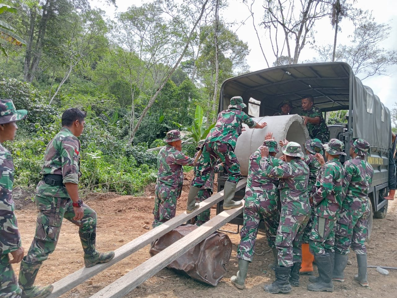 Dalam kegiatan TMMD, bukan hanya TNI saja yang bekerja tetapi ada juga masyarakat Kampung sekitar juga ikut membantu dalam penurunan Gorong-Gorong tersebut maupun nanti saat pemasangan.