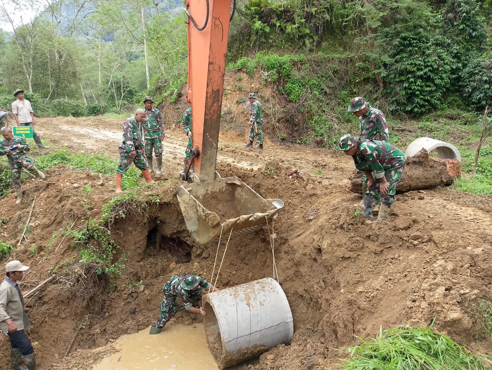 Takengon-satupena.co.id: Tim satgas TNI Manunggal Membangun Desa (TMMD) Kodim 0106/Ateng bersama dengan warga masyarakat dengan penuh semangat dan bergotong royong melakukan pemasangan gorong-gorong di sejumlah titik lokasi TMMD, tepatnya di Desa kemeyen kec, bintang Kab, Aceh Tengah. Selasa(06/08/2024).