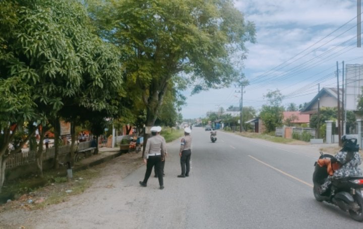 Menindaklanjuti aduan masyarakat, Satuan Lalu Lintas (Satlantas) Polres Aceh Utara turun langsung meninjau lokasi sebuah pohon yang tumbuh miring ke badan jalan di kawasan Gampong Meunasah Alue Drien LB, Kecamatan Lhoksukon, Kabupaten Aceh Utara, pada Selasa (4/11/2025).