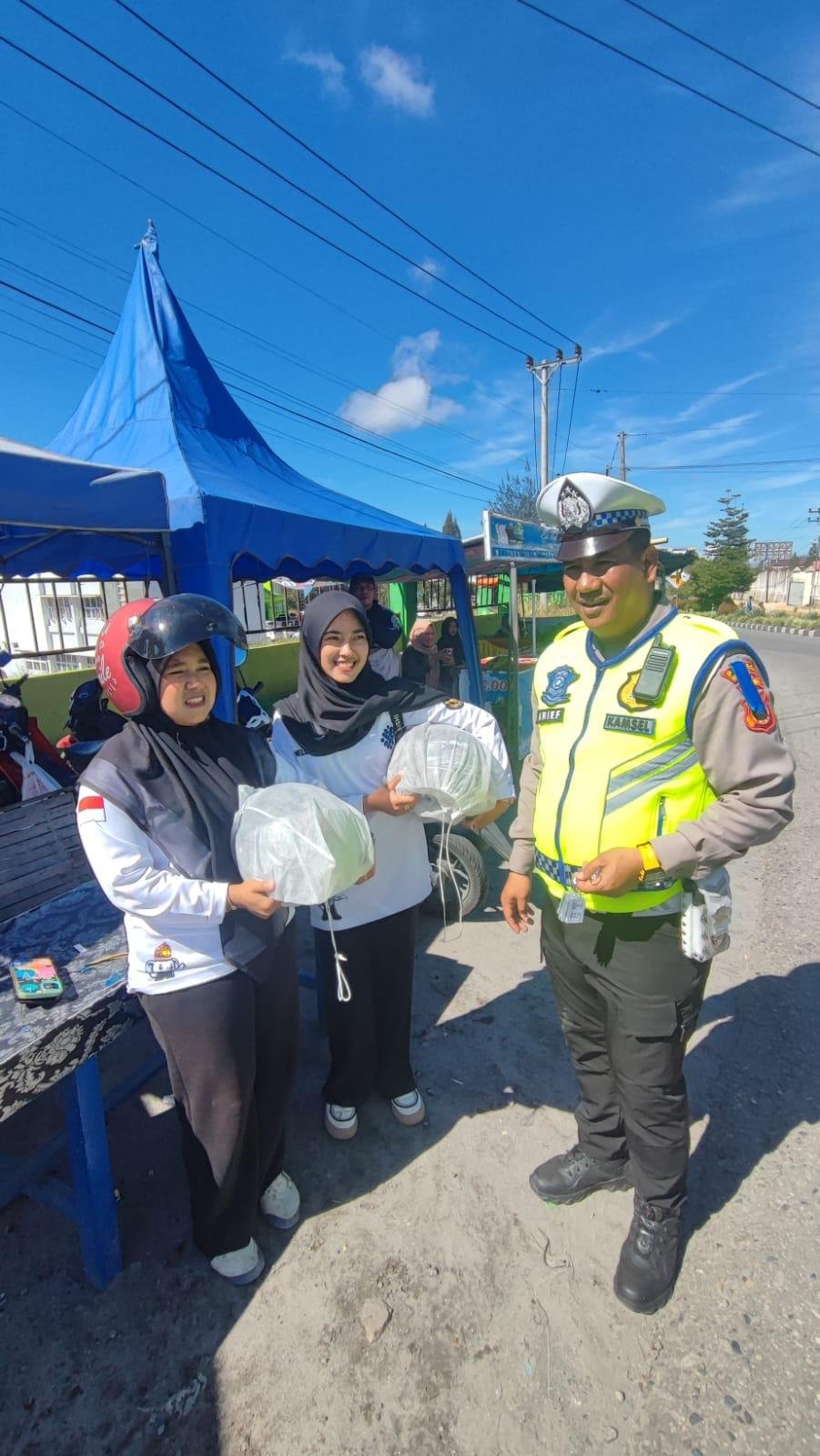 Kasat Lantas Polres Bener Meriah, AKP Syafaruddin, bersama anggotanya turun langsung ke lapangan memberikan edukasi kepada para pengguna jalan. Petugas mengimbau pengendara agar selalu mematuhi aturan lalu lintas serta menggunakan perlengkapan keselamatan, khususnya helm berstandar SNI.