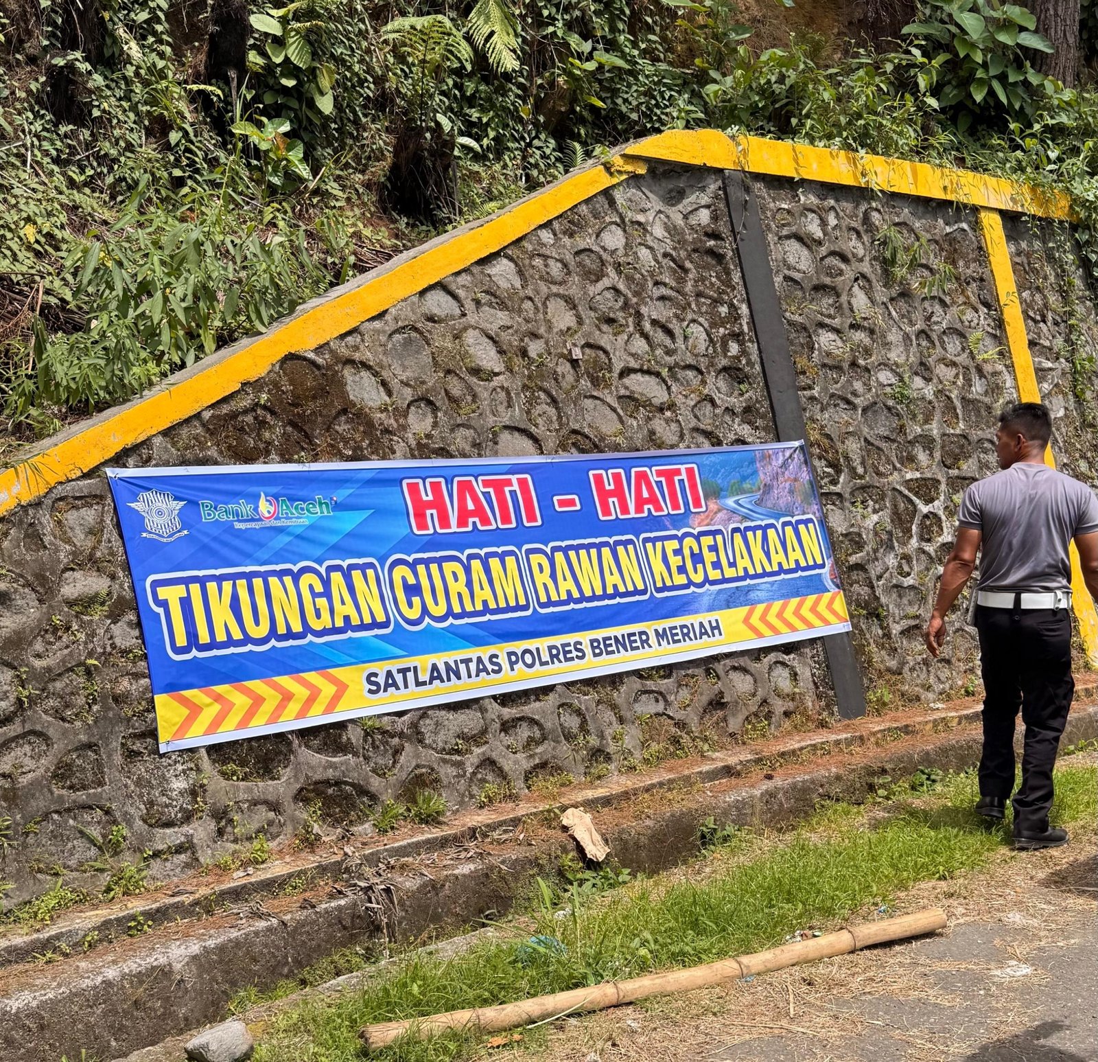 Dalam kegiatan tersebut, turut hadir Kanit Kamsel Polres Bener Meriah, Affandi Arif, S.H., bersama sejumlah personel Satlantas. Mereka memasang spanduk di beberapa titik rawan kecelakaan yang sering dilalui masyarakat, guna meningkatkan kewaspadaan para pengendara.