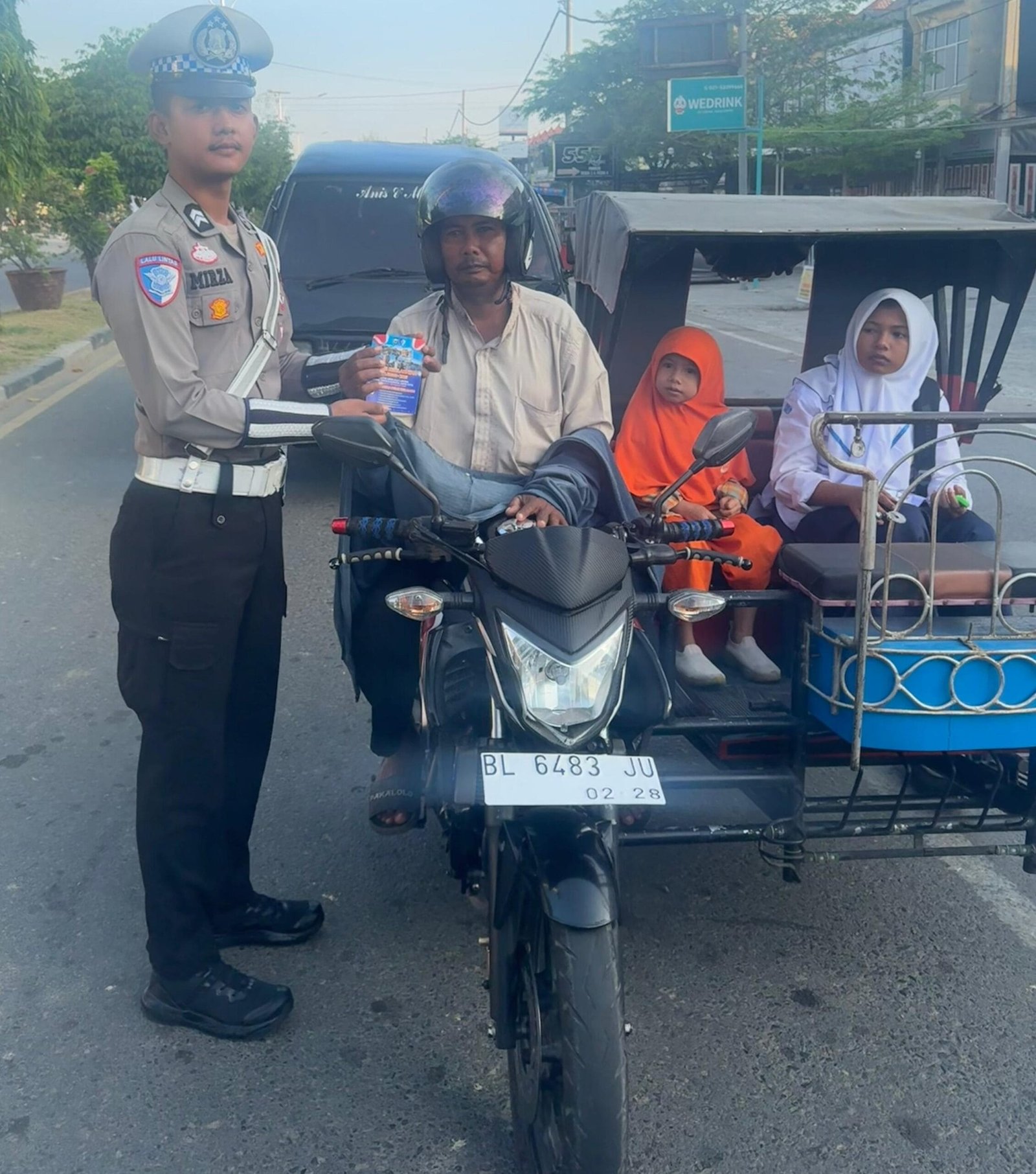 Satlantas Polres Pidie Bagikan Ratusan Brosur dan Stiker Tertib Berlalu Lintas