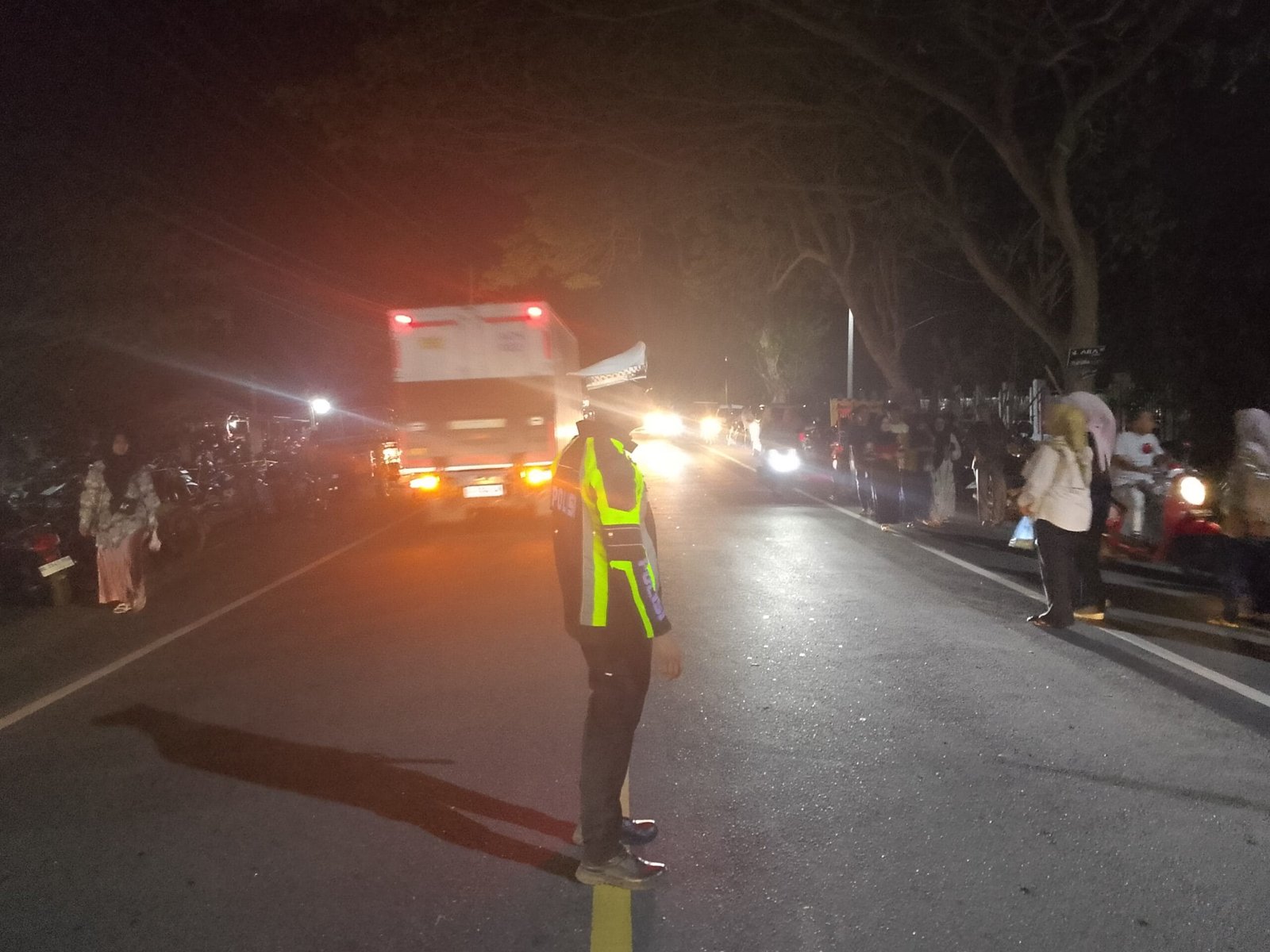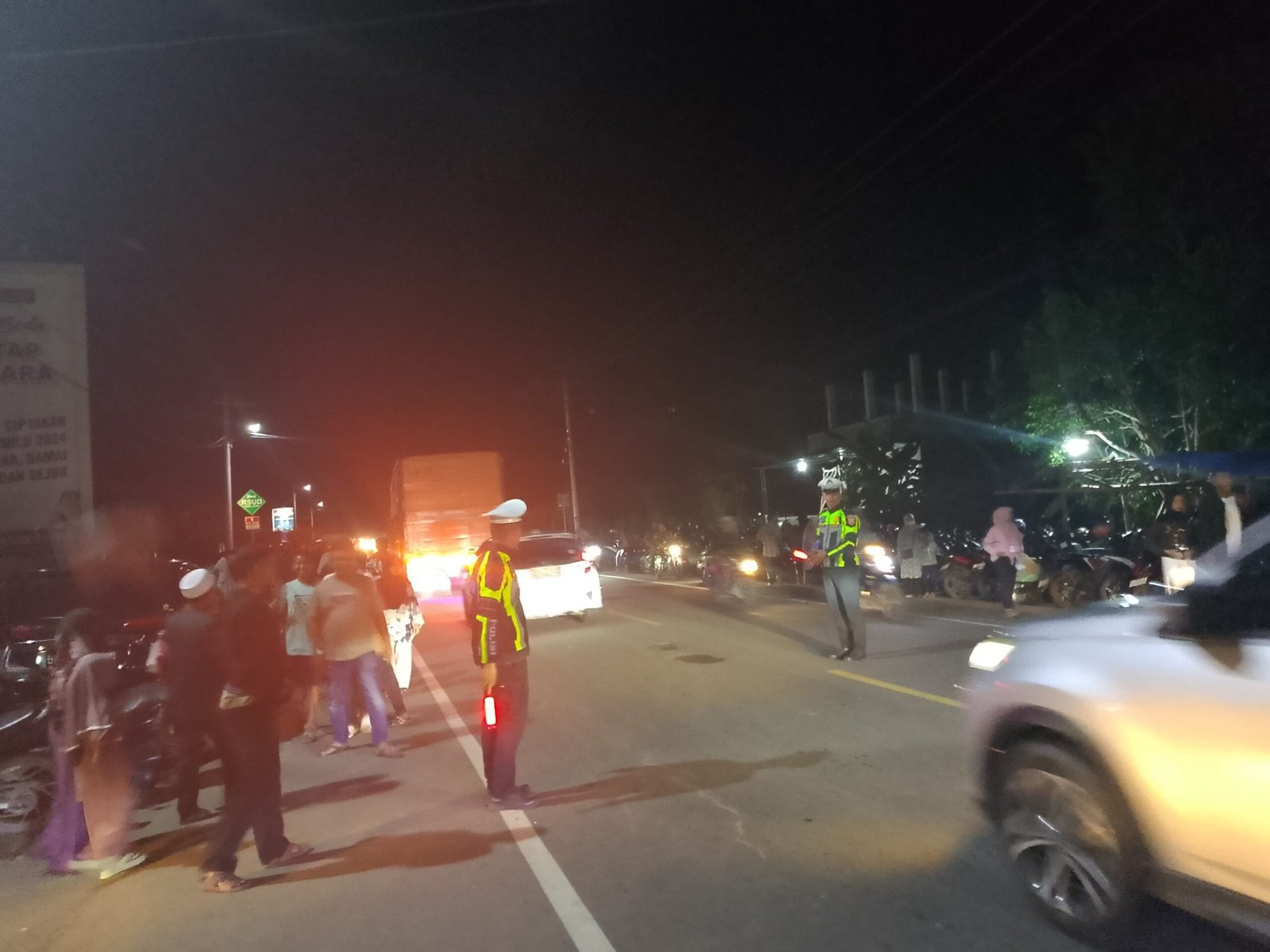 Pidie Jaya – Personel Satlantas Polres Pidie Jaya bergerak cepat mengatasi potensi kemacetan di jalur lintas nasional Banda Aceh-Medan, tepatnya di kawasan wisata Islami Pantai Kuthang, Kecamatan Trienggadeng, Sabtu (18/1/2025) malam.