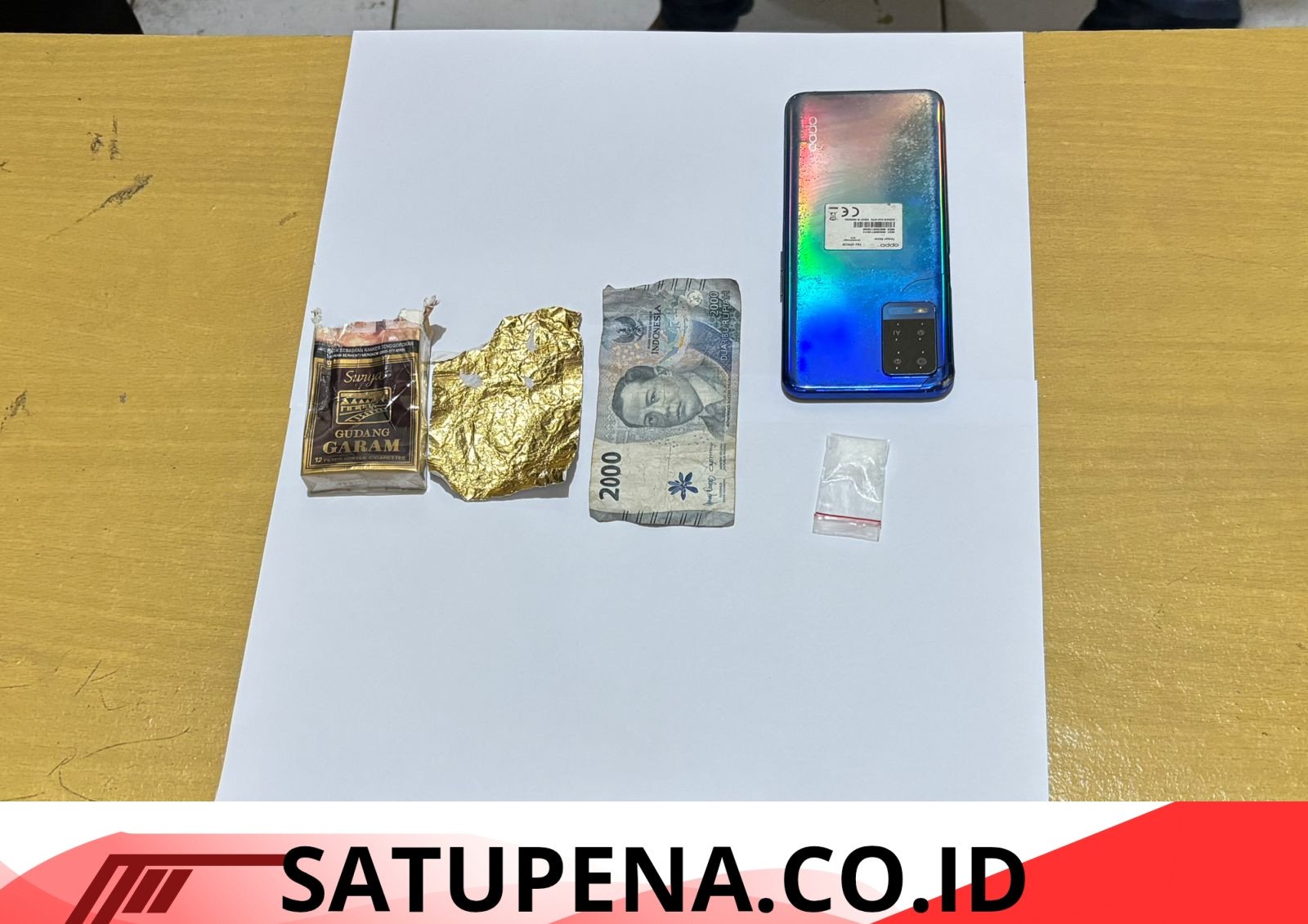“Tim opsnal berhasil mengamankan barang bukti berupa 1 (satu) paket / plastik klip ukuran sedang berisi narkotika jenis Sabu, dengan berat kotor / Bruto : 1,35 (satu koma tiga lima) gram, 1 (satu) lembar kertas timah rokok warna kuning, 1 (satu) bungkus rokok merk surya gudang garam, 1 (satu) lembar uang tunai Rp 2.000,- (dua ribu rupiah), 1 (satu) unit Handphone merk OPPO A-54 warna biru, nomor simcard : 0882-0172-7xxx,