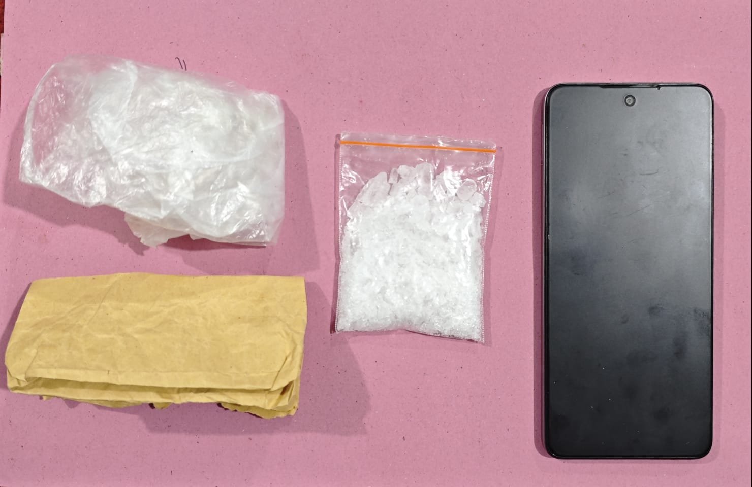 Dari hasil penggeledahan di lokasi, petugas menemukan dan menyita barang bukti berupa satu paket diduga narkotika jenis sabu yang dibungkus plastik klip bening dengan berat bruto 20,45 gram, satu amplop warna cokelat, satu plastik asoy, serta satu unit handphone.